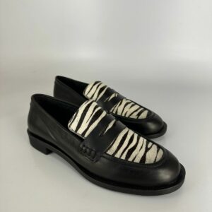 Aquarela17 Mocassim Det. Zebra Couro Preto
