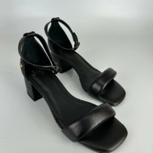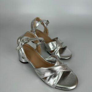 365 Sandália Salto Bloco Couro Metalizado Prata
