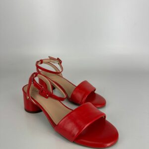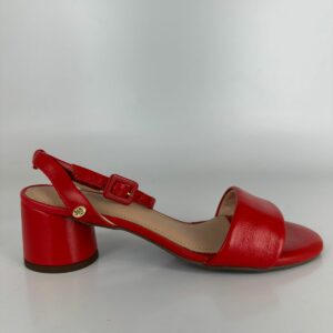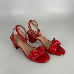 365 Sandália Com Laço Salto Bloco Couro Vermelho