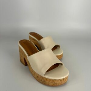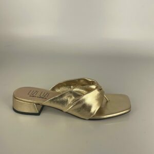 Lizielizi Tamanco Salto Bloco Baixo Couro Ouro