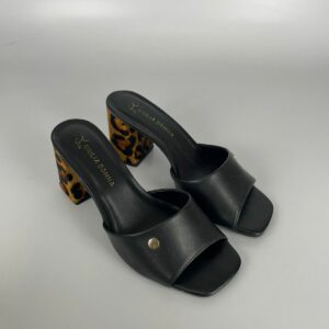 Giuliadomna Sandália Com Pelo Onça Couro Preto