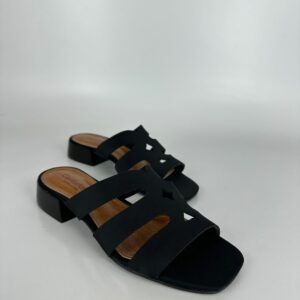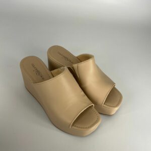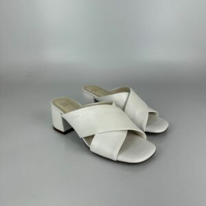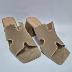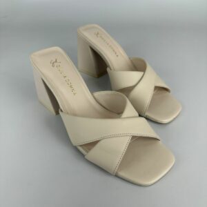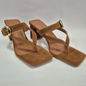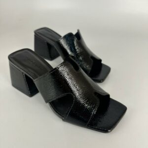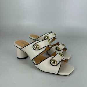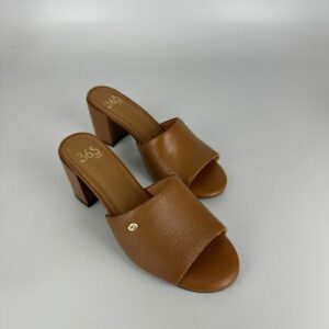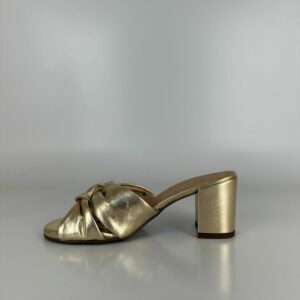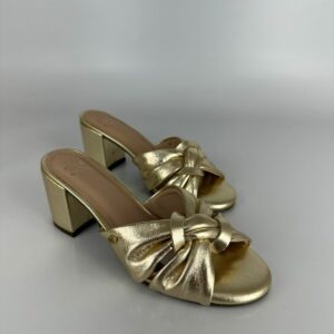 365 Tamanco Salto Bloco Couro Metalizado Dourado