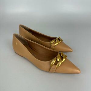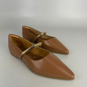 Santalolla Sapatilha Sling Back Metalizada Couro Dourado