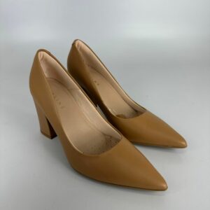 Lialine Scarpin Salto Alto Bloco Couro Whisky