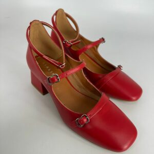 Lizielizi Scarpin Com Fivela Couro Vermelho