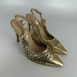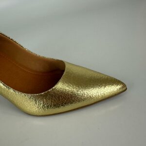 Lialine Scarpin Salto Alto Fino Couro Craquele Dourado