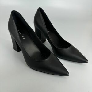 Lialine Scarpin Salto Alto Bloco Couro Preto