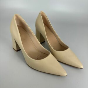 Lialine Scarpin Salto Bloco Alto Couro Nude