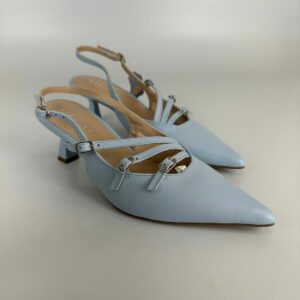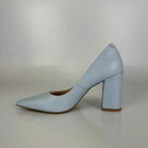 Lialine Scarpin Salto Alto Bloco Couro Azul