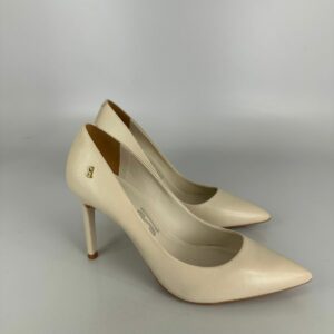 Santalolla Scarpin Salto Fino Couro Pelica Amendoa