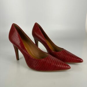 Tabita Scarpin Salto Fino Alto Couro Vermelho
