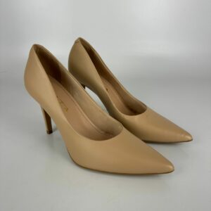 Tabita Scarpin Salto Fino Alto Couro Creme
