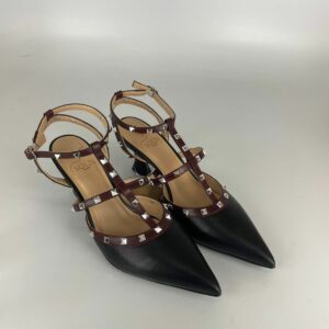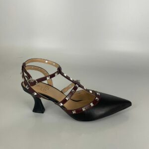 Solis Scarpin Valentino Salto VĂrgula Couro Preto E Malbec