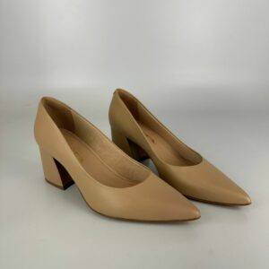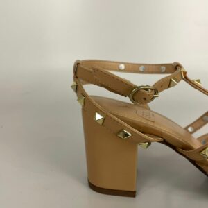 Solis Scarpin Valentino Salto Bloco Couro Nude