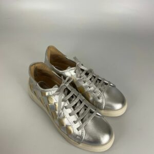 Aquarela25 Tênis Tramado Couro Metalizado Ouro E Prata