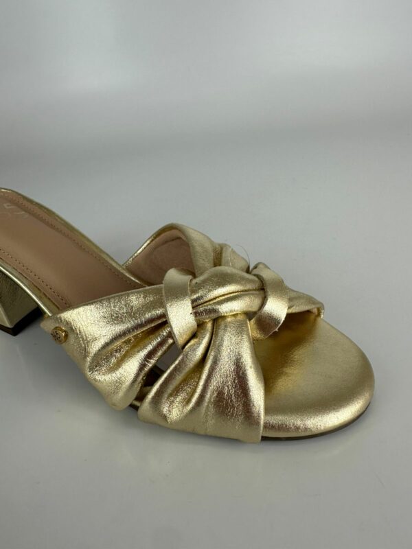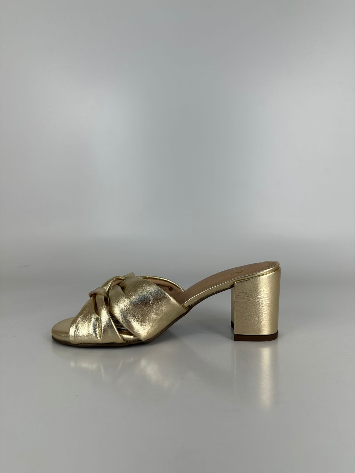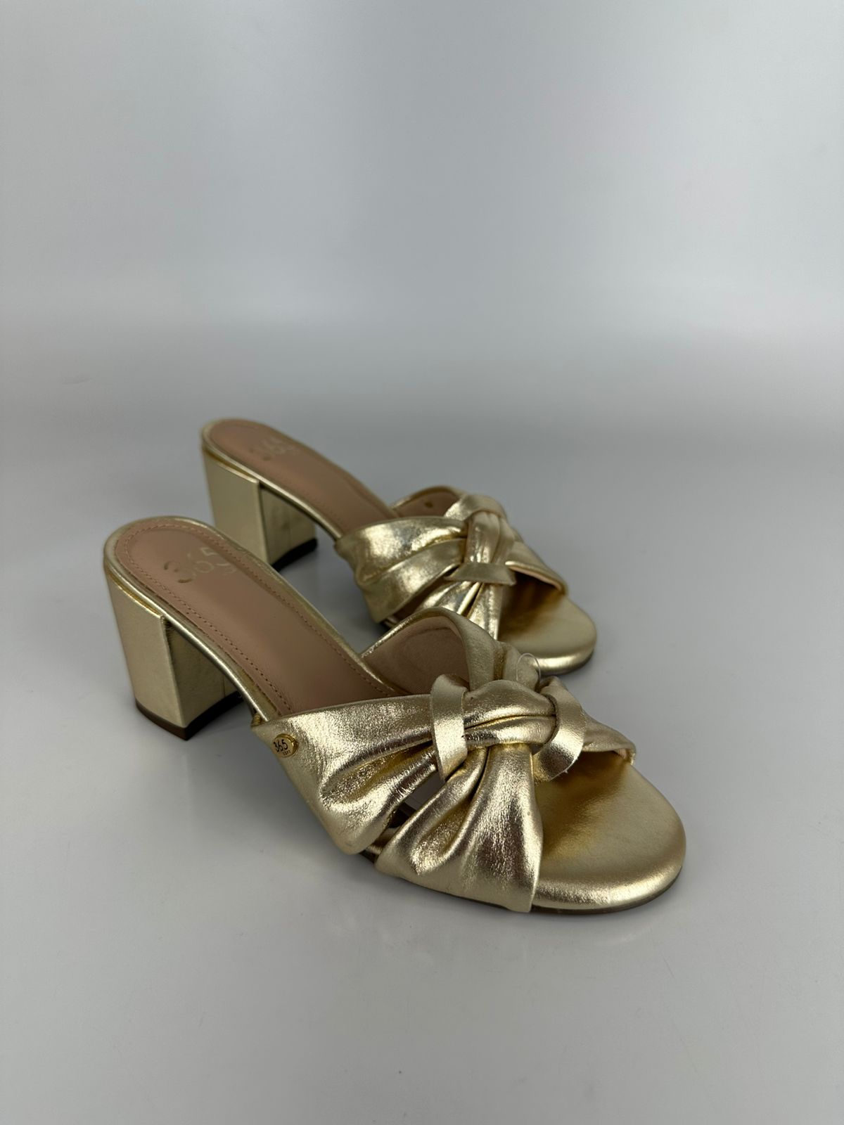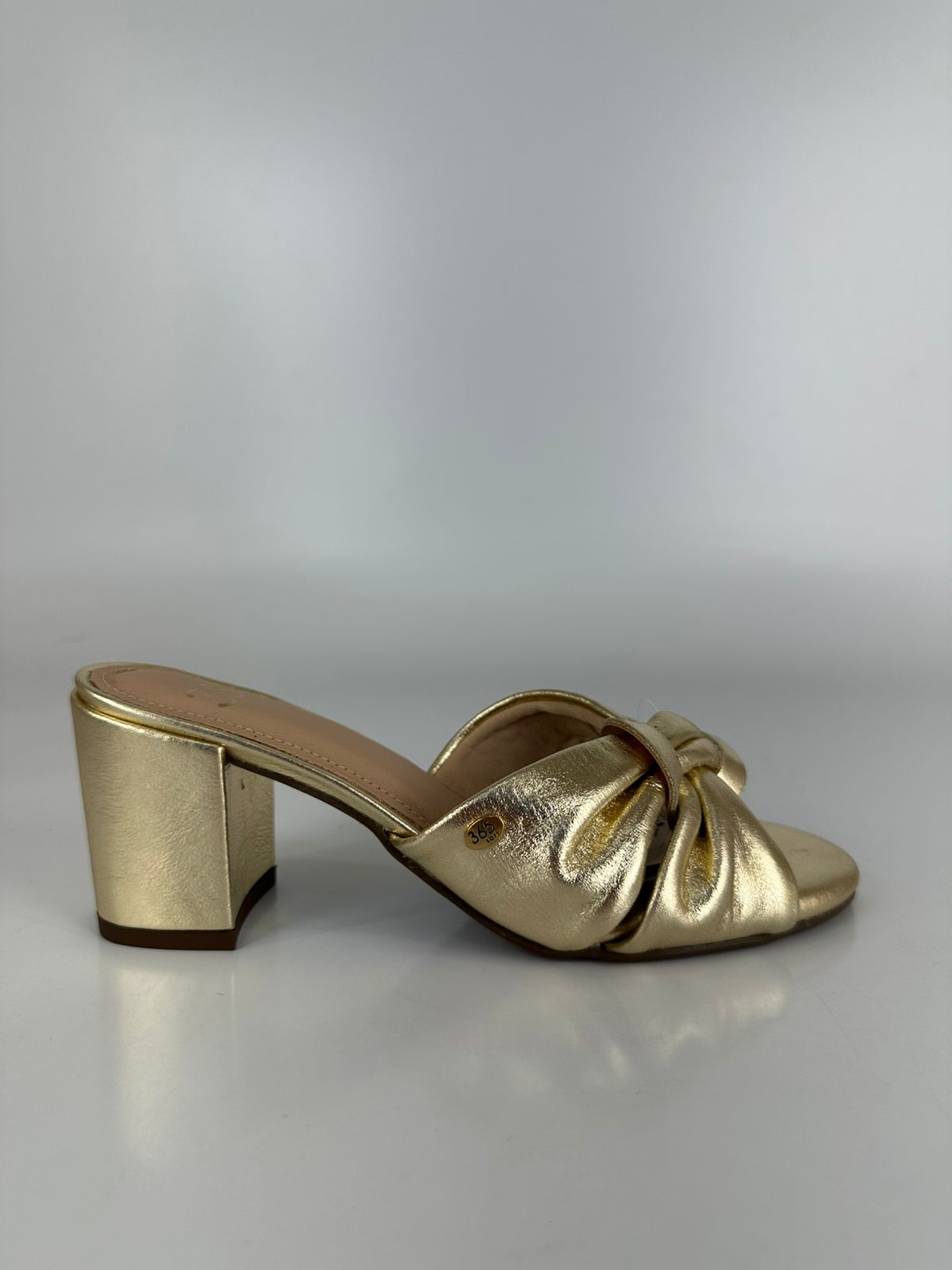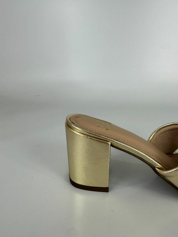 365 Tamanco Salto Bloco Couro Metalizado Dourado