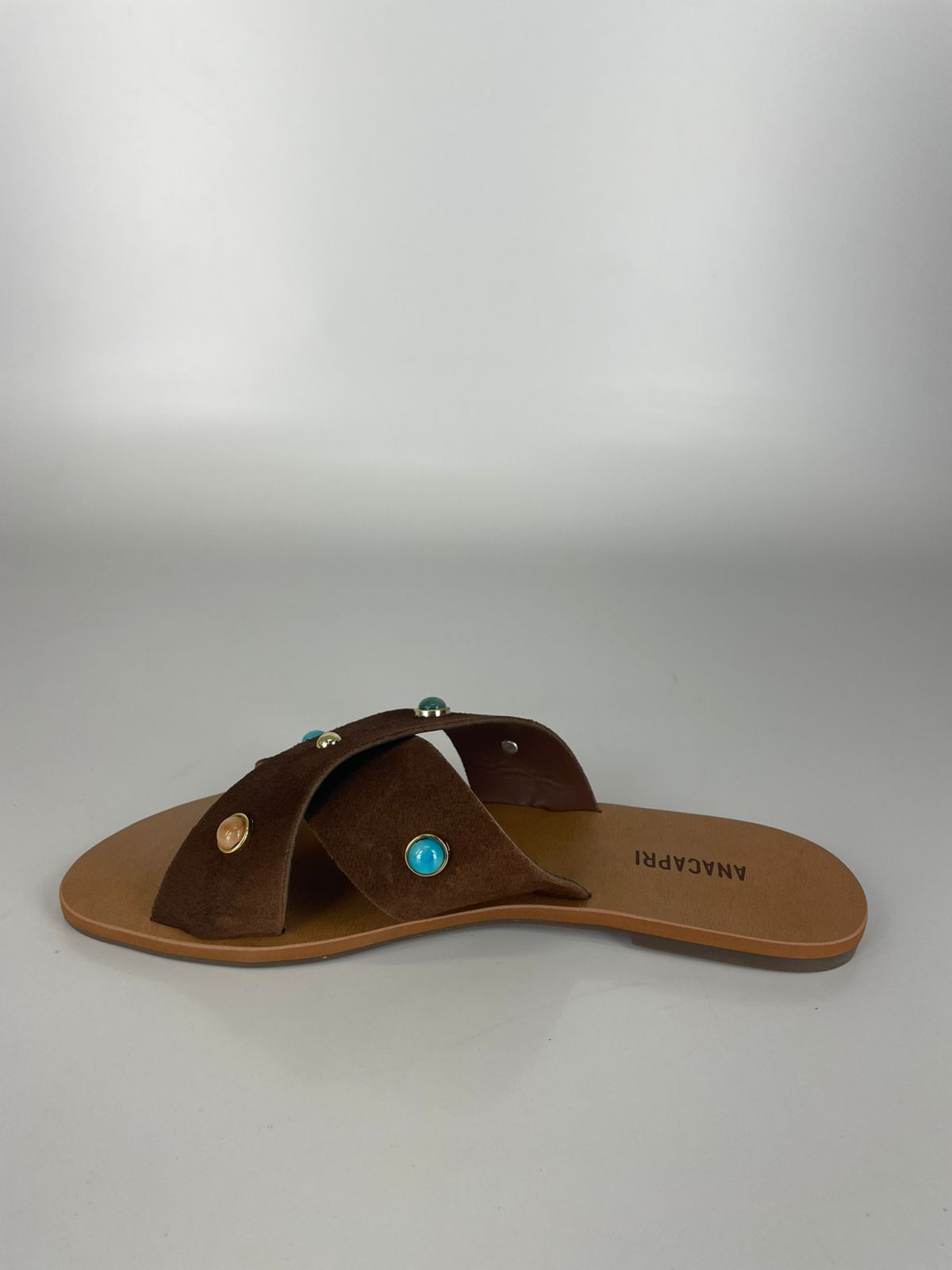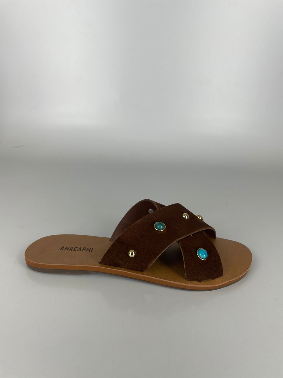 Anacapri Chinelo Em “X” C30014 0446 0001 Couro Camurça Marrom