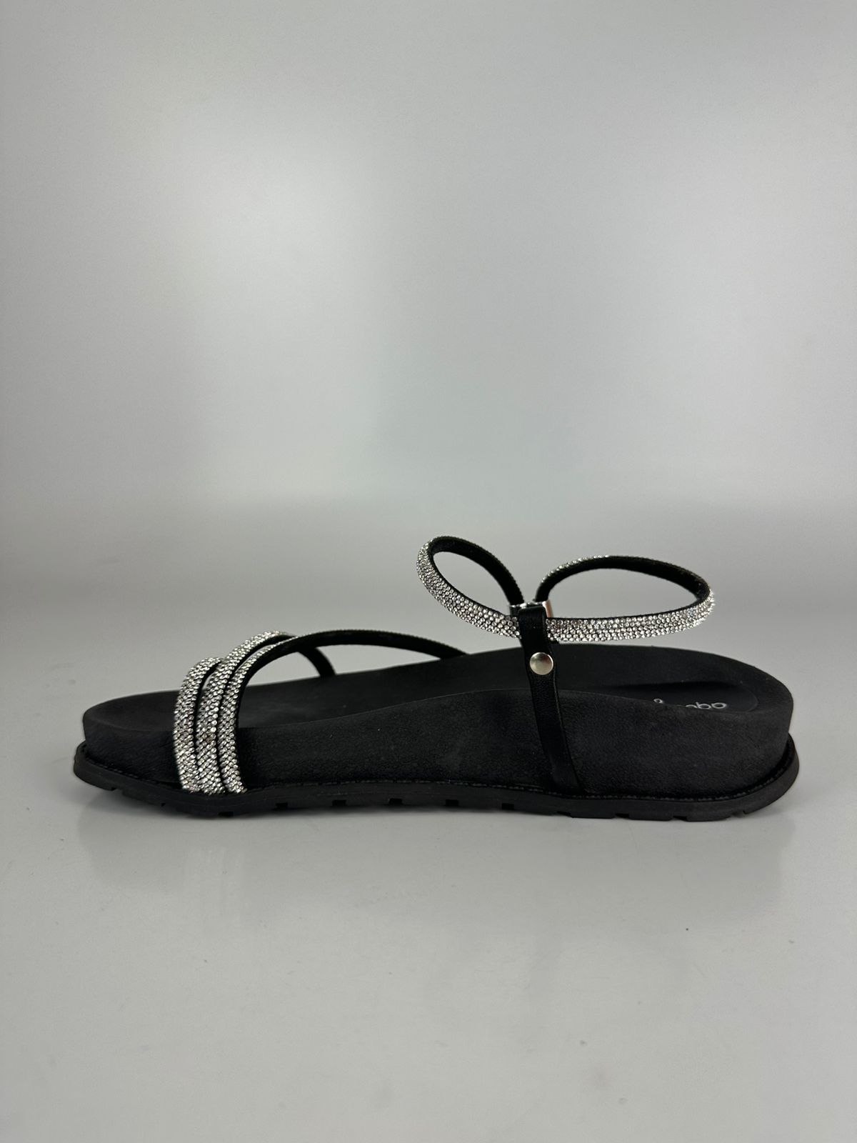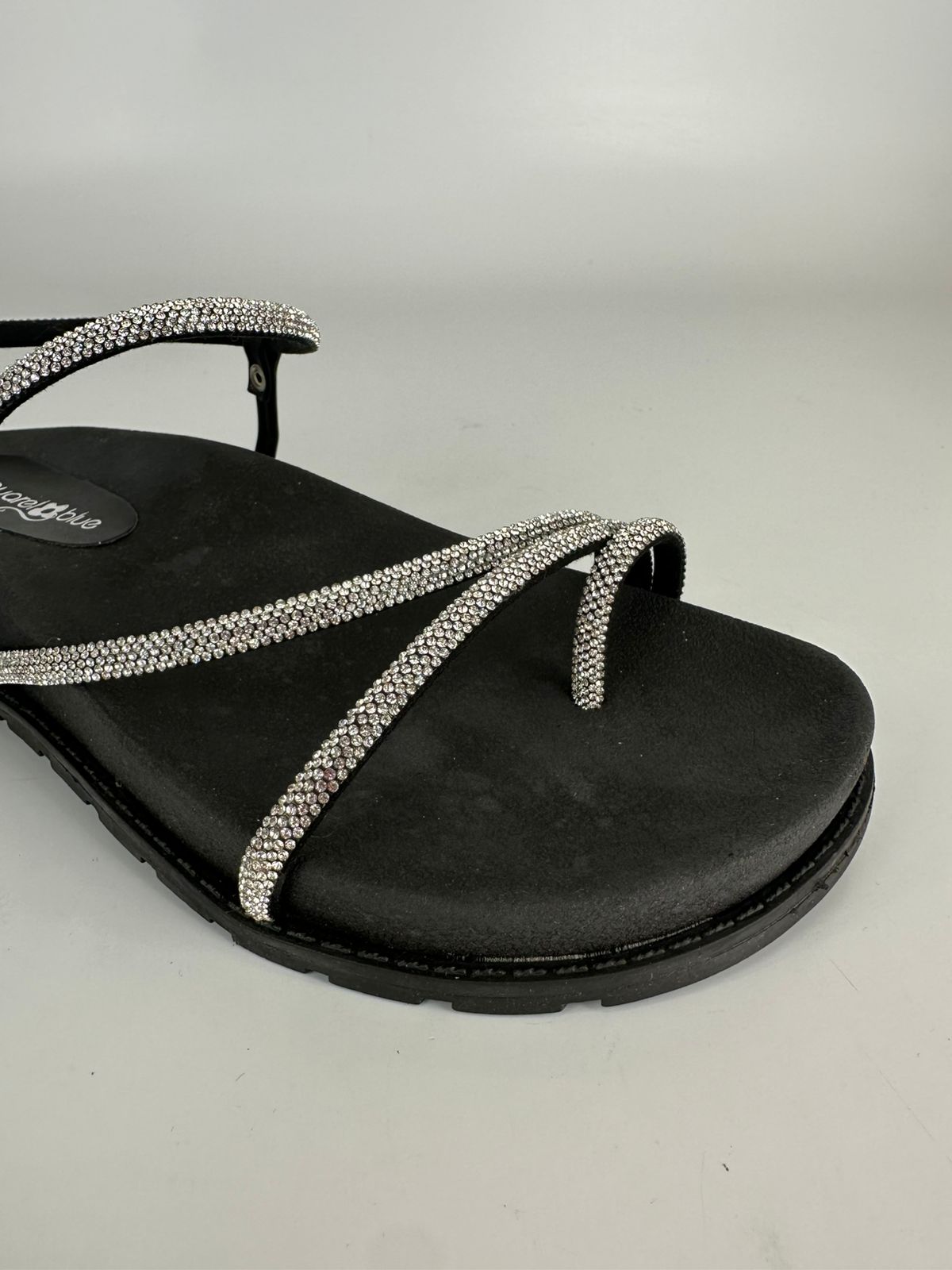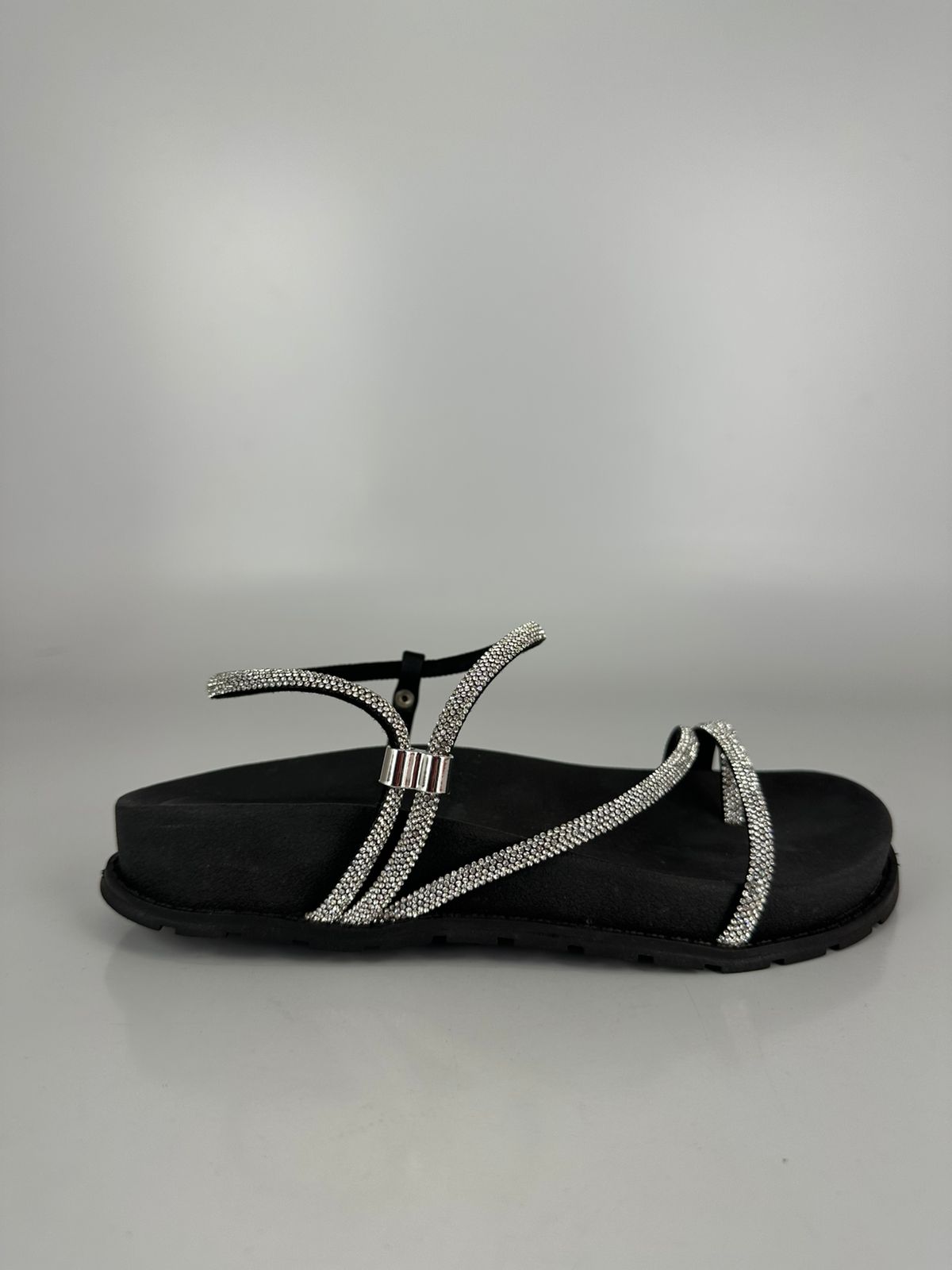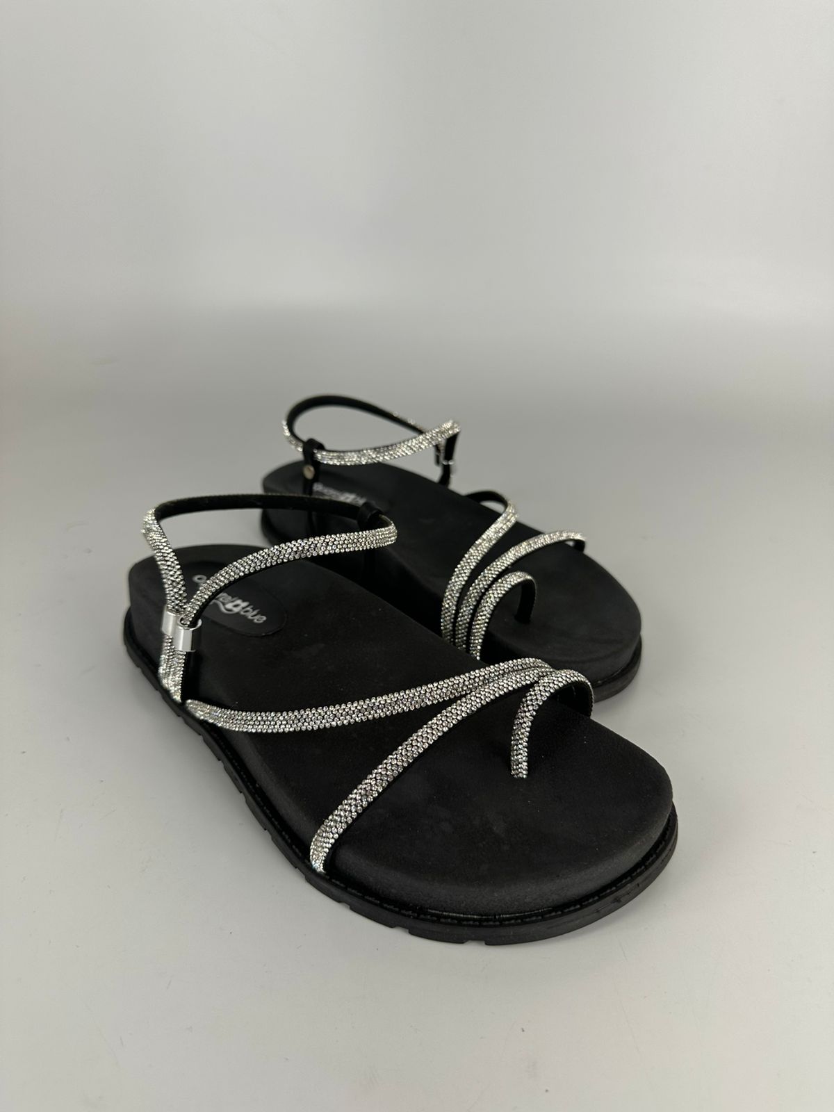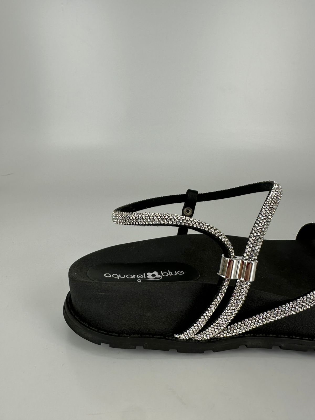 Aquarela1 Rasteira Ref. 3954 Sintético Preto E Cristal