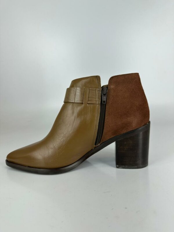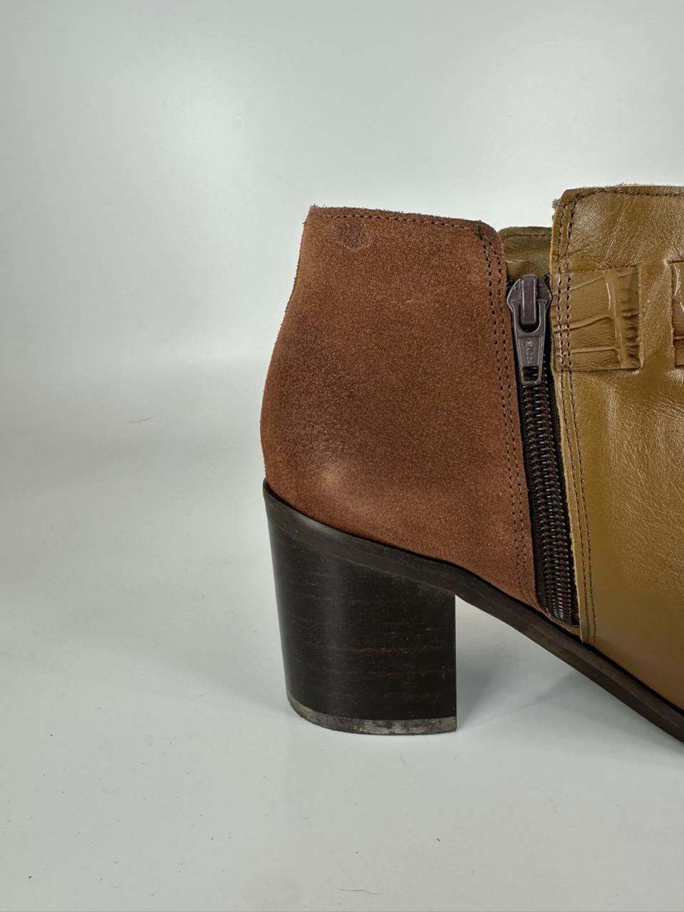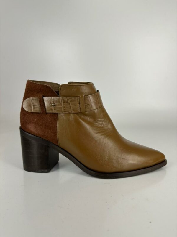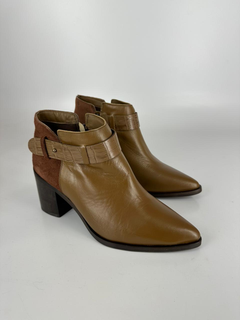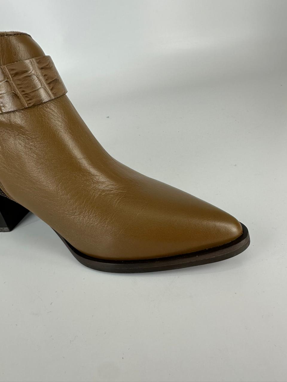 Aquarela17 Bota Bico Fino Salto Bloco Couro Chocolate