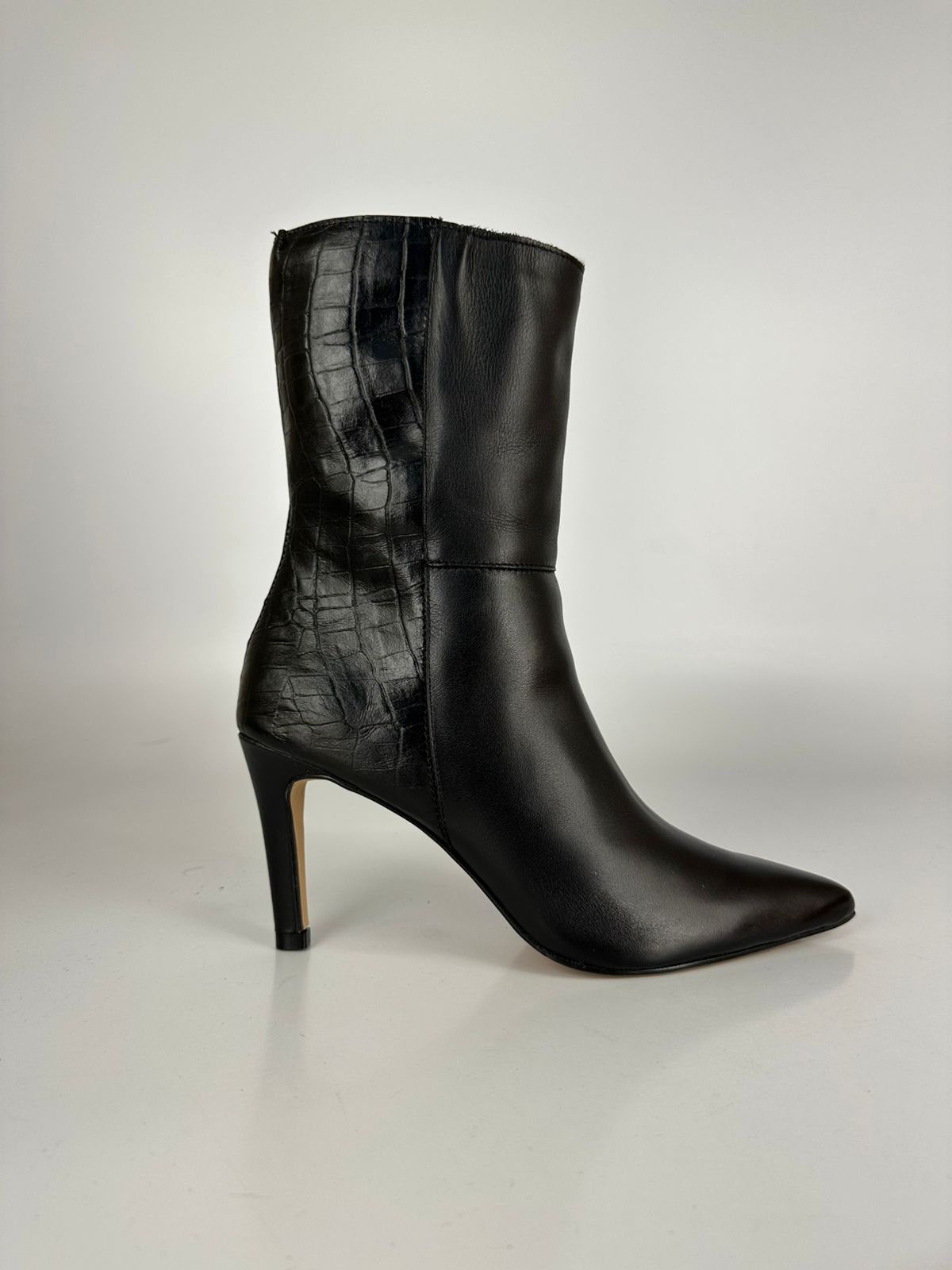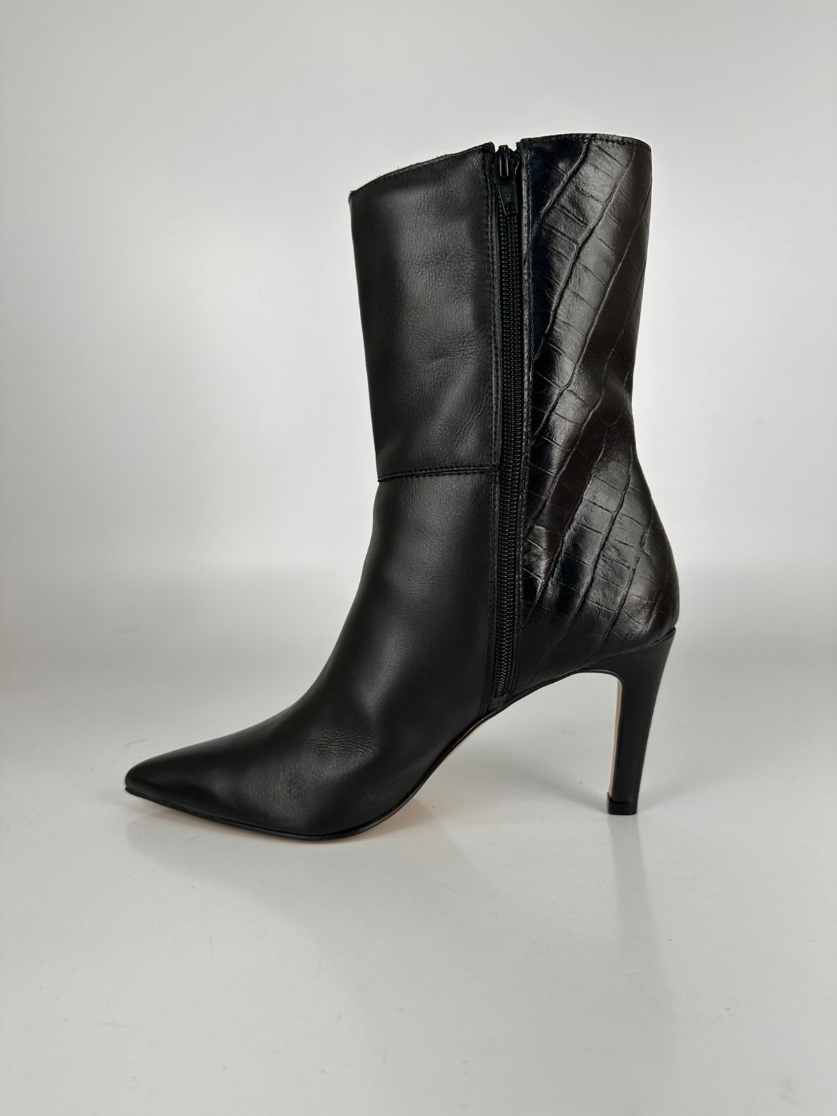 Aquarela17 Bota Cano Médio Salto Fino Couro Preto