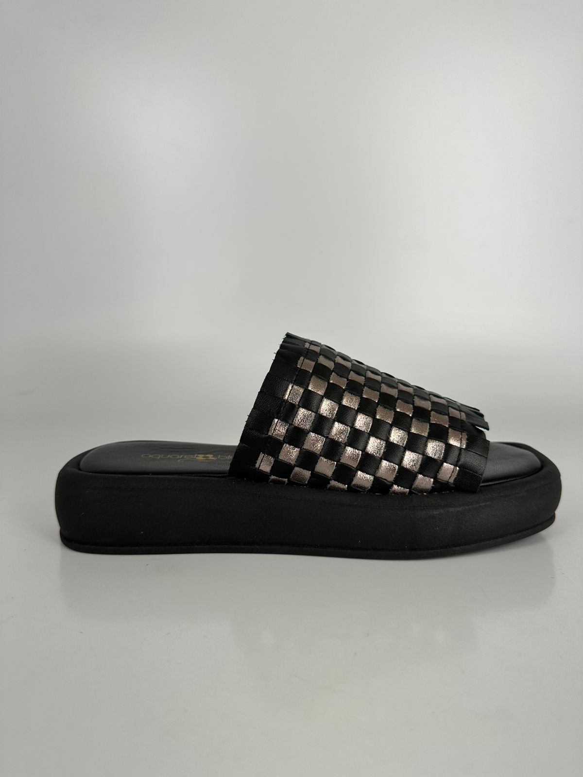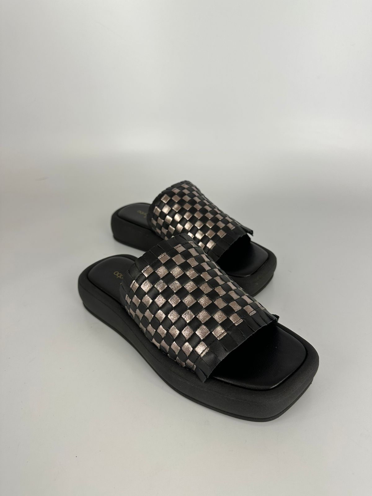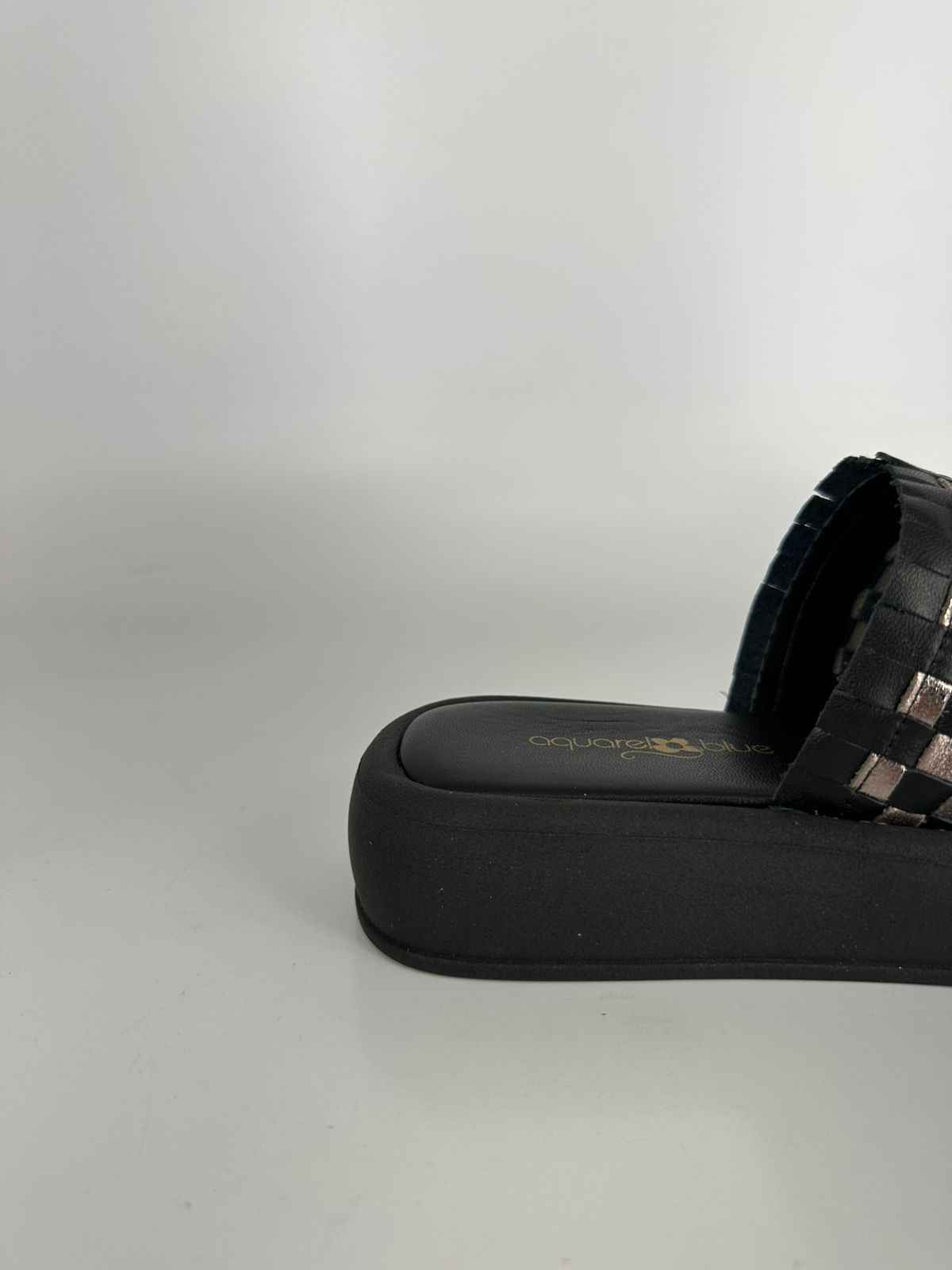 Aquarela18 Flatform Trançada Onix Couro Preto