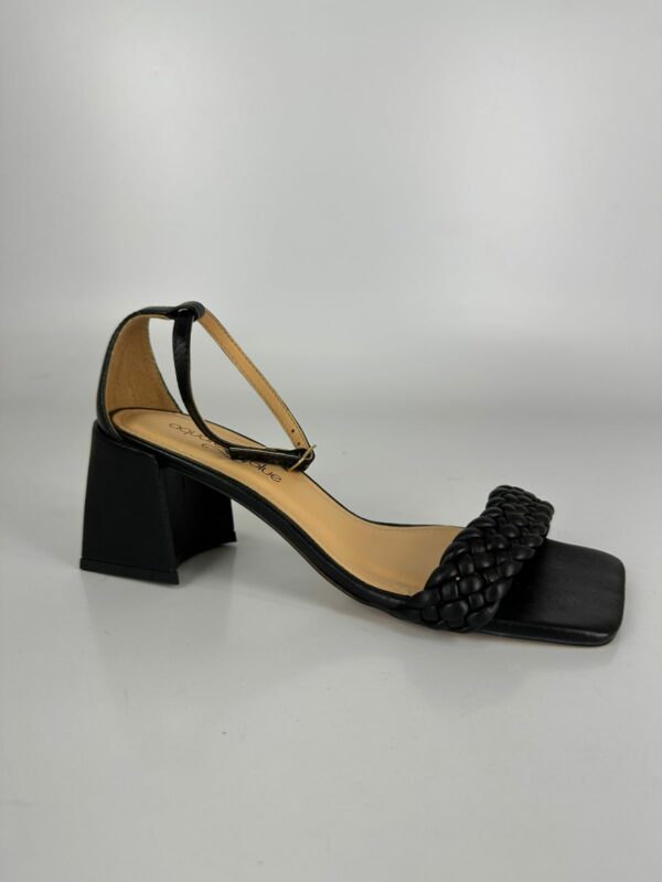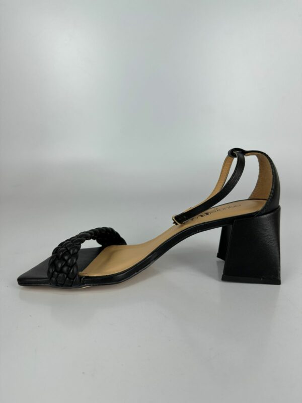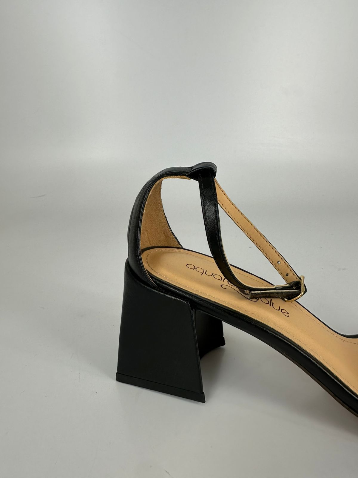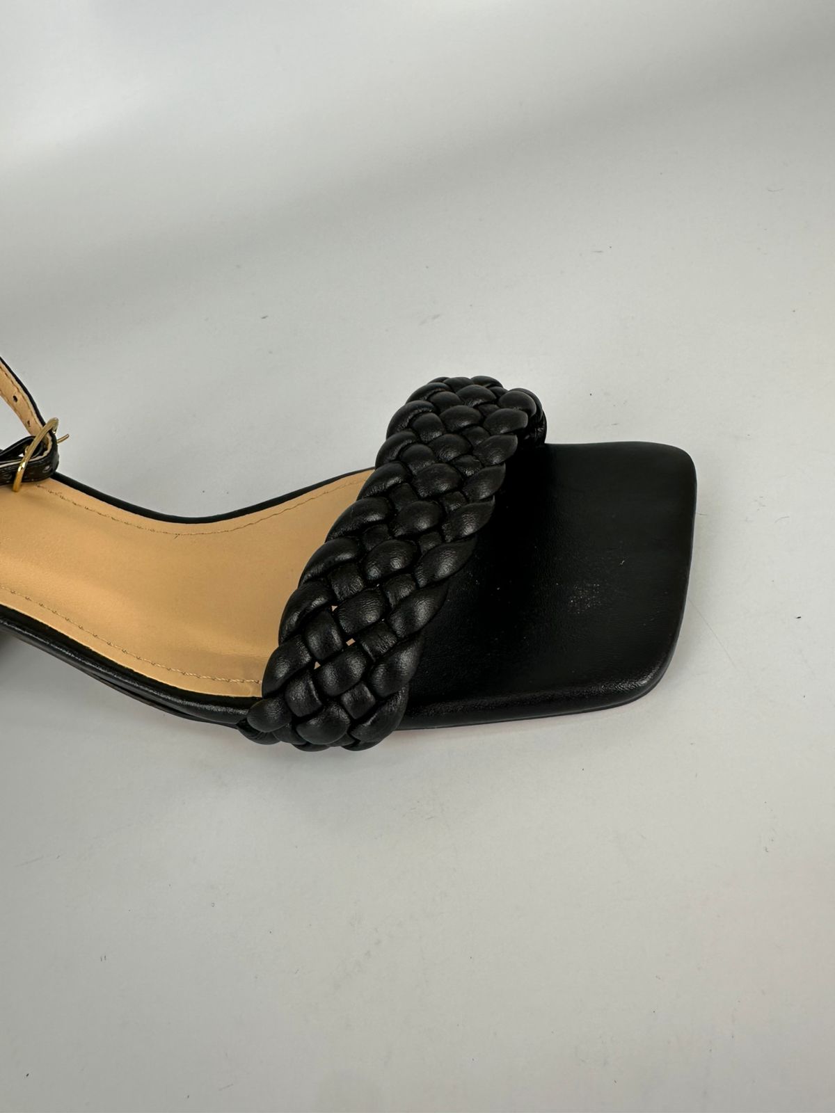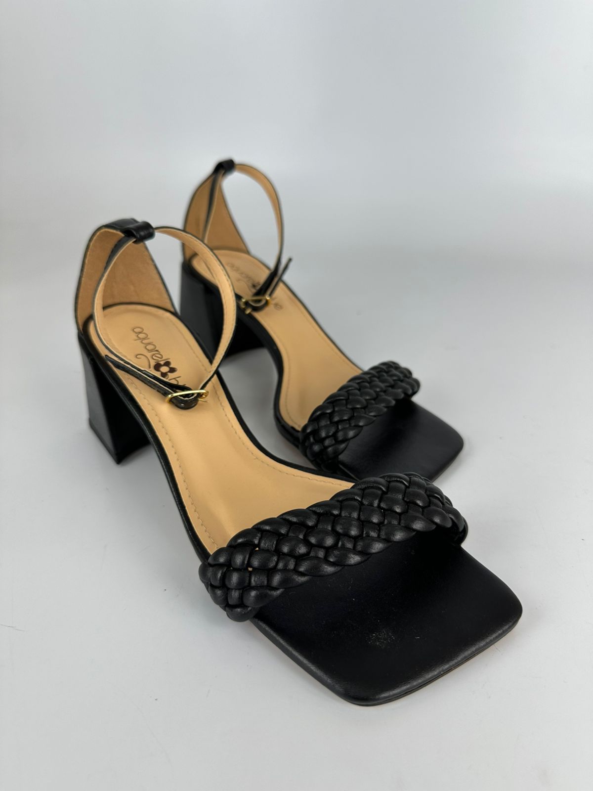 Aquarela18 Sandália Tira Trançada Manual Salto Bl Couro Preto