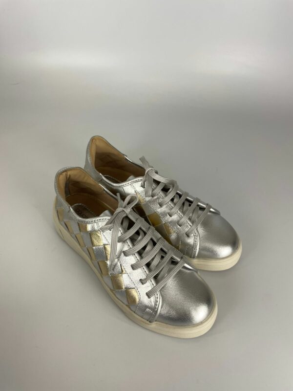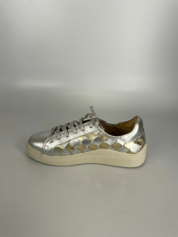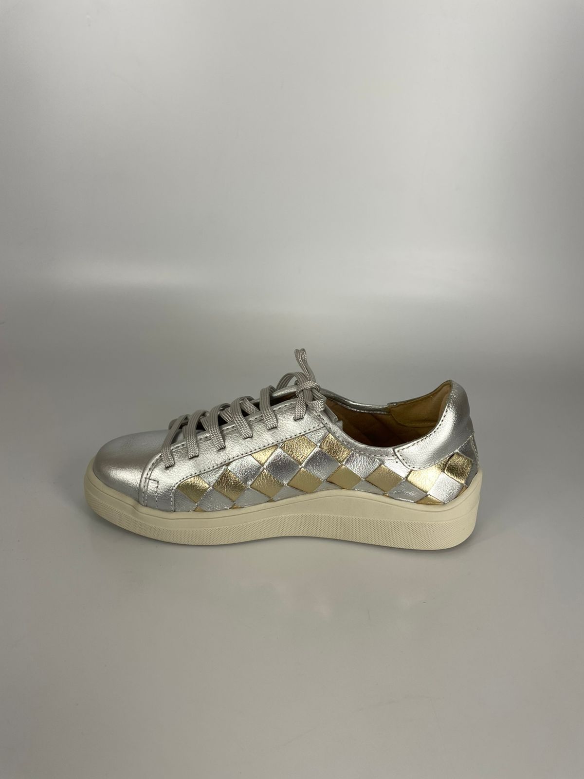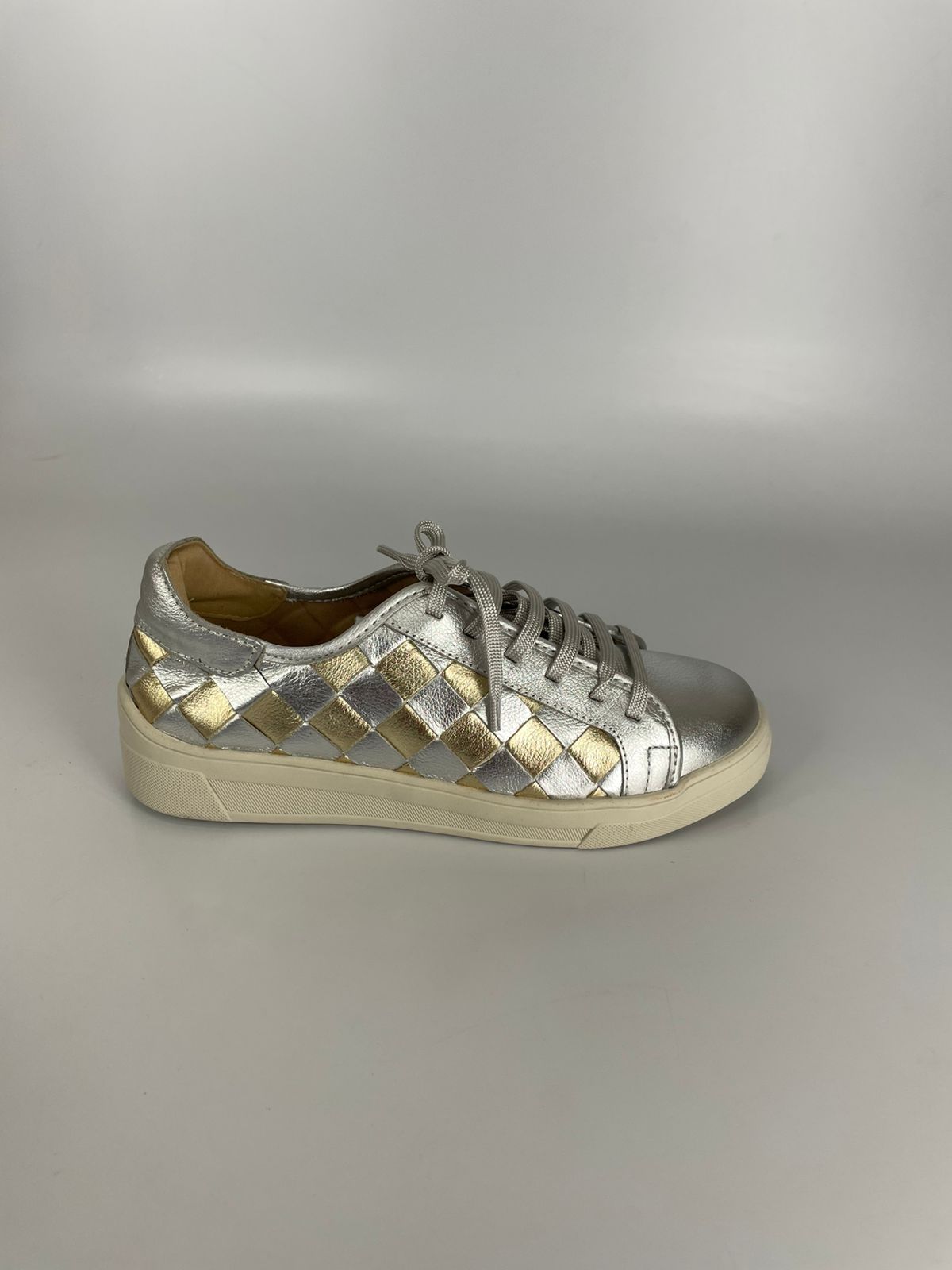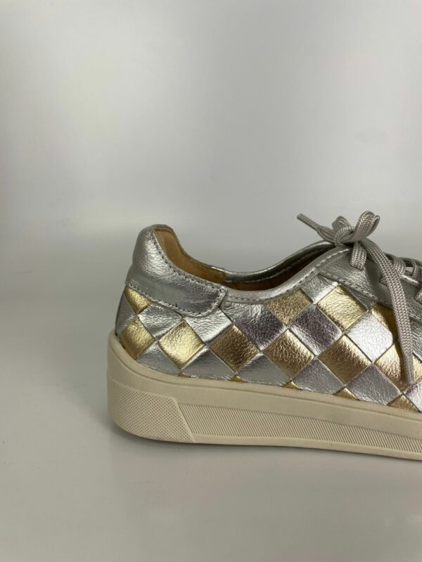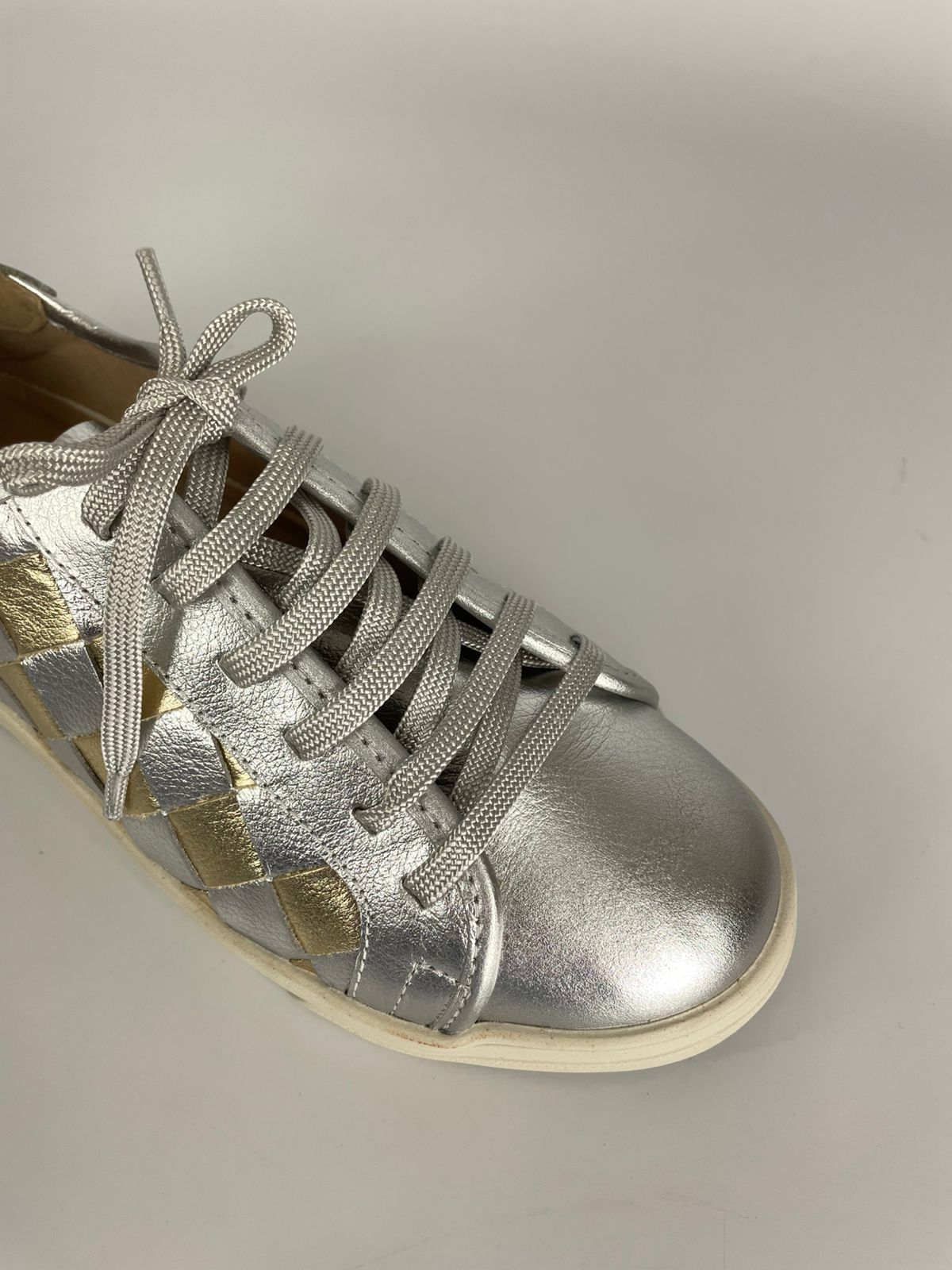 Aquarela25 Tênis Tramado Couro Metalizado Ouro E Prata
