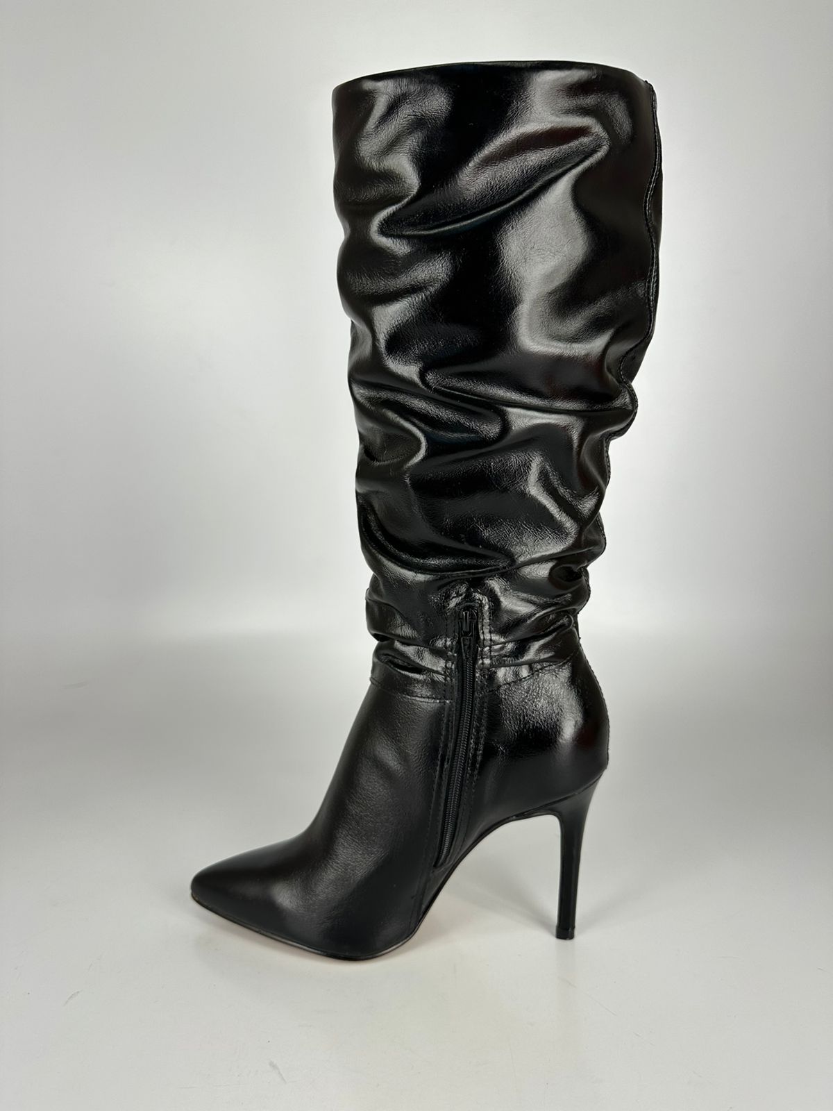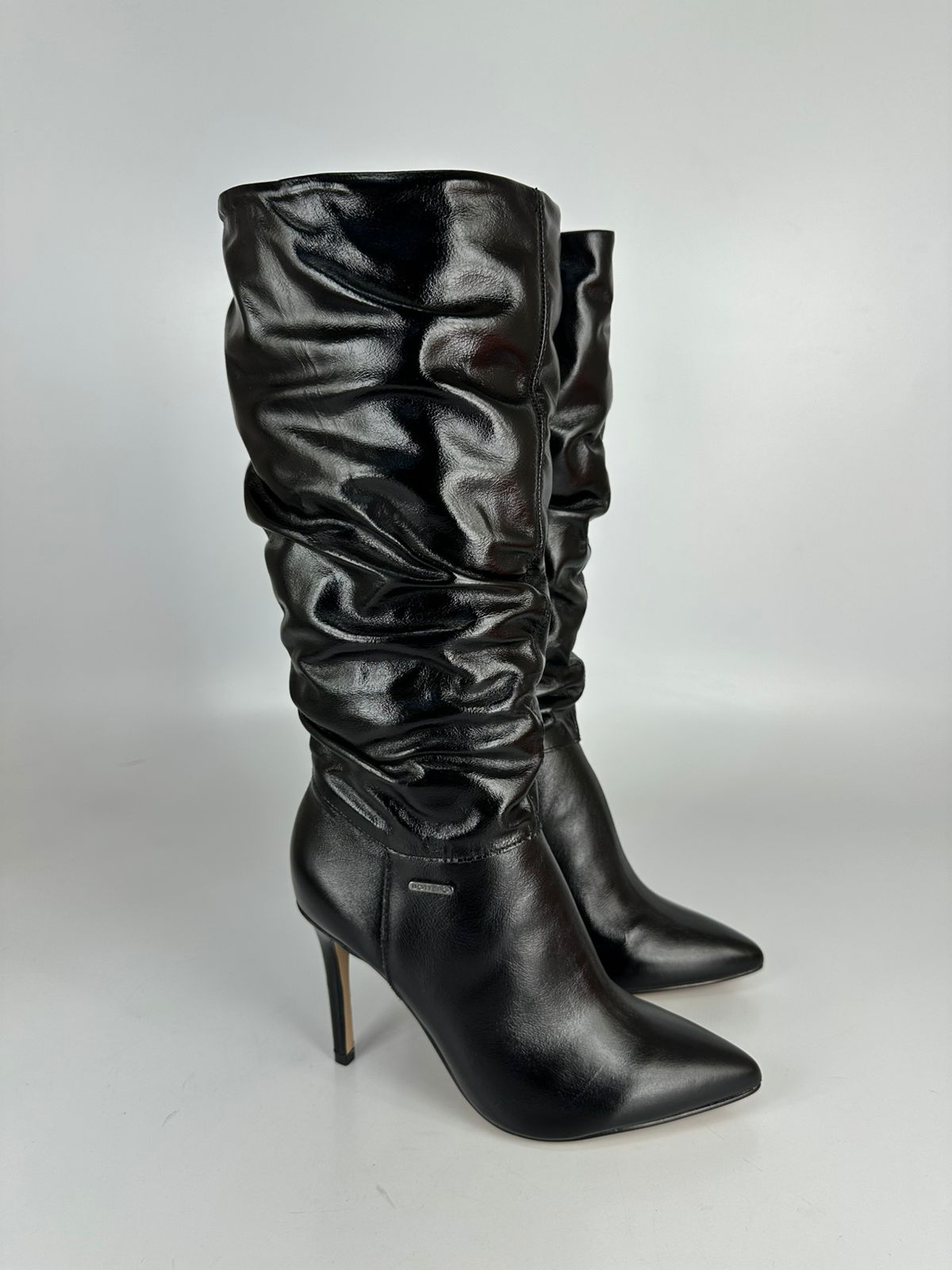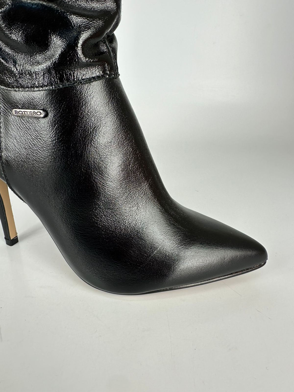 Bottero Bota 347009 Cano Longo Couro Preto Cristal