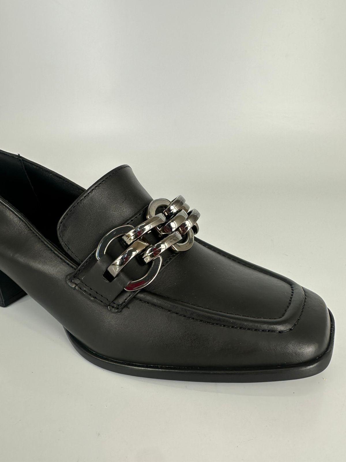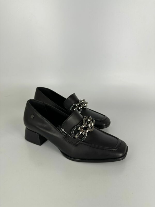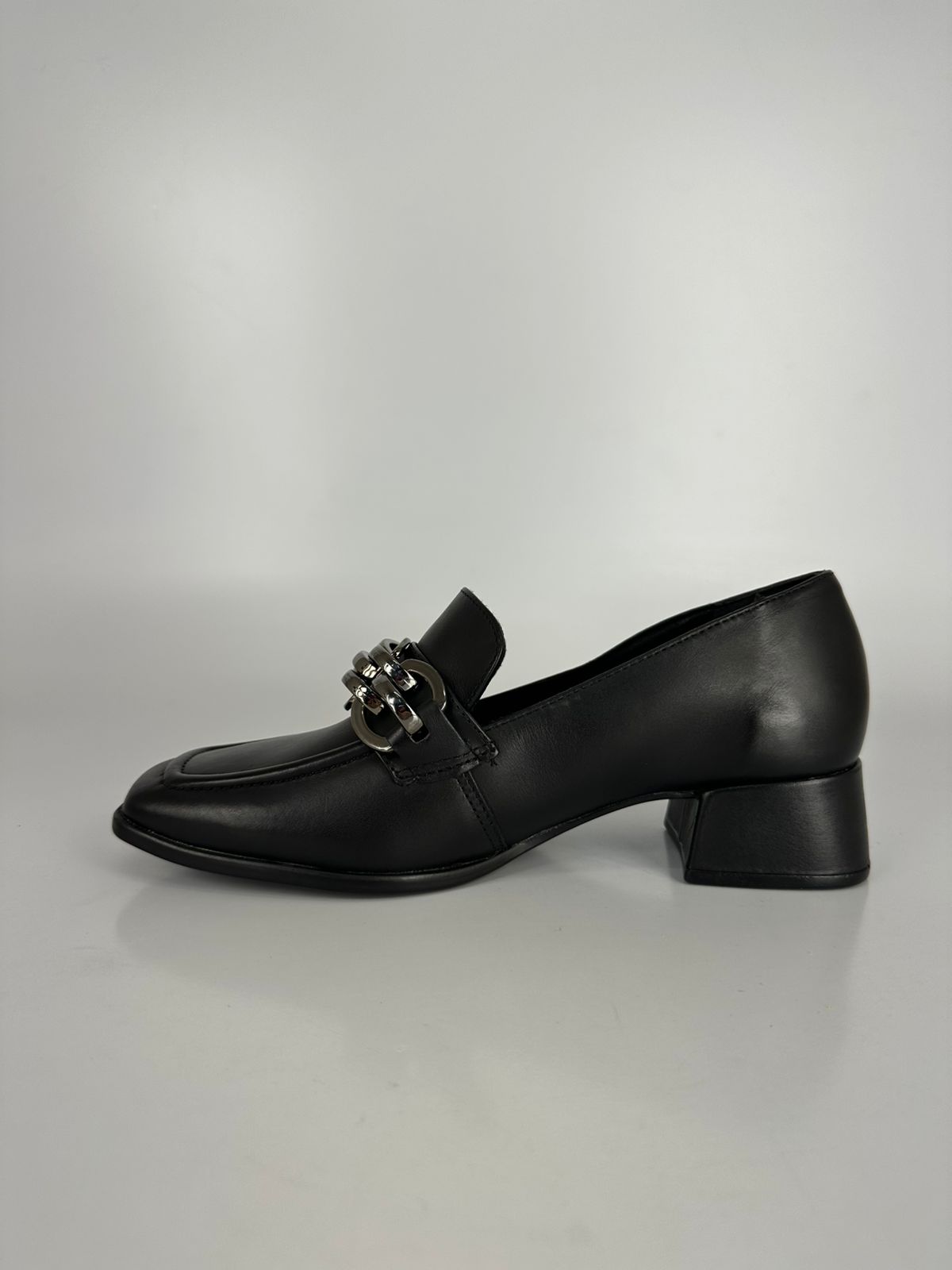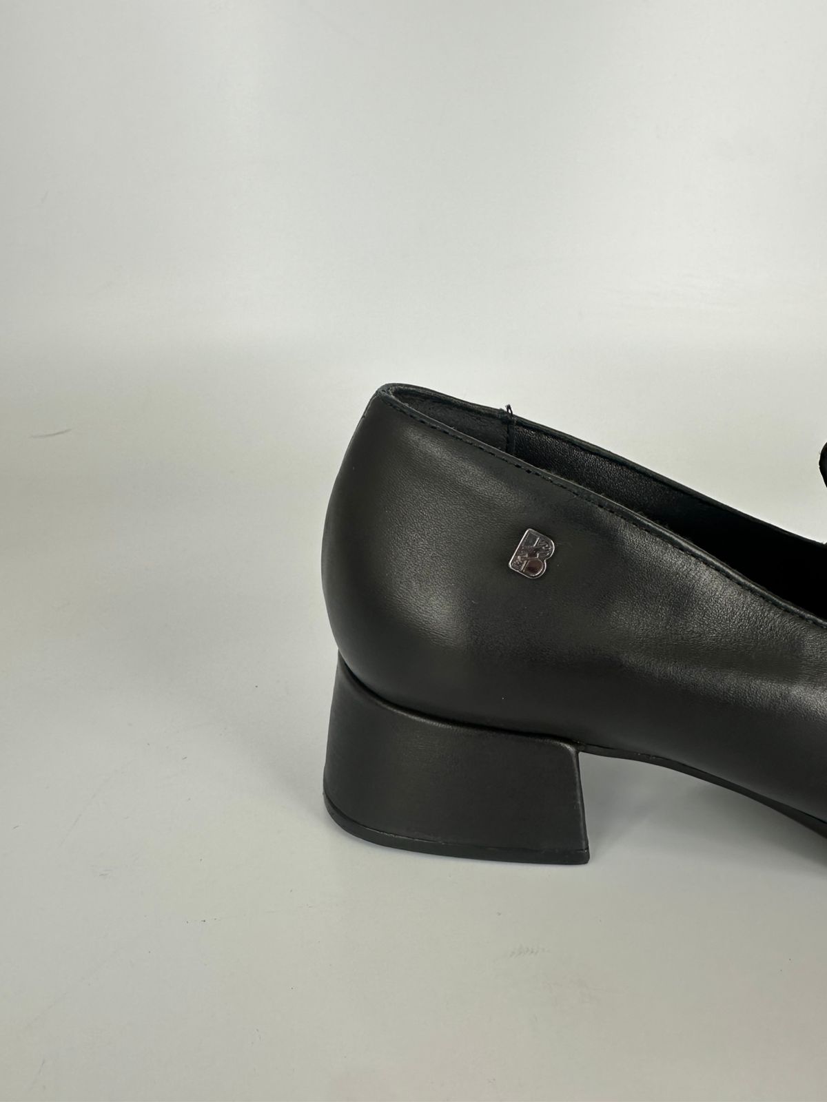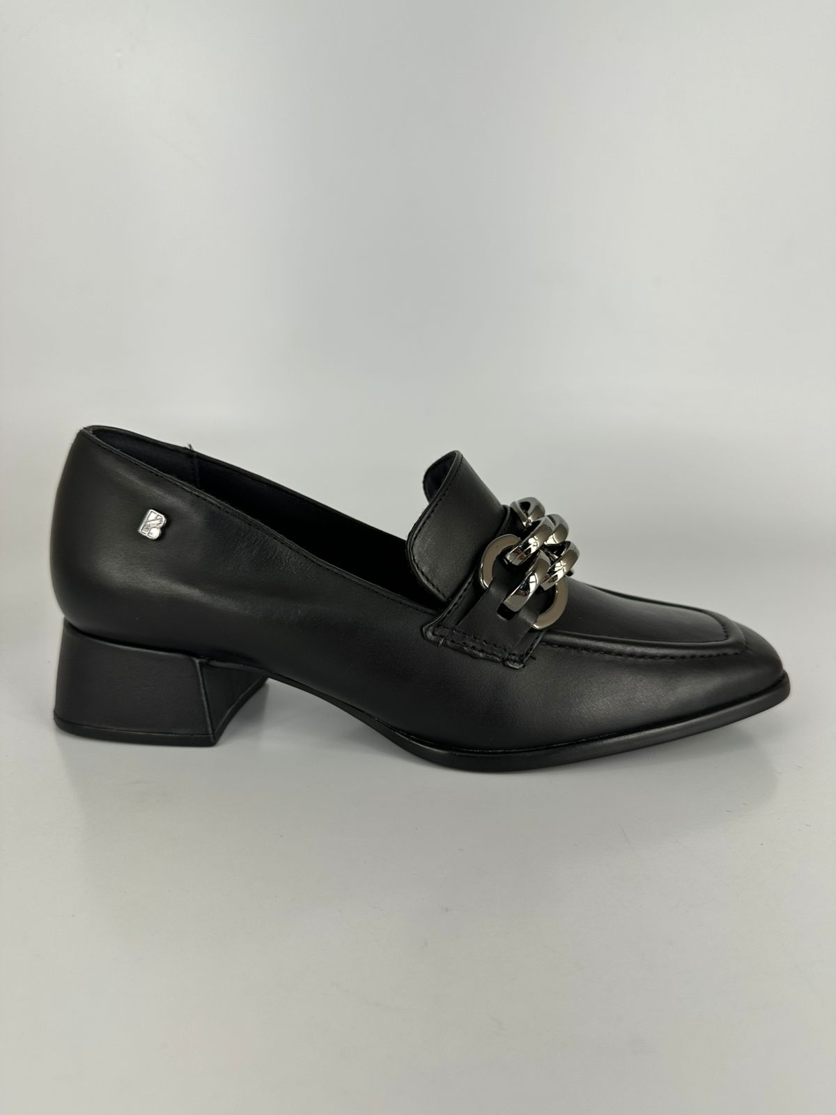 Bottero Sapato Com Corrente Salto Baixo Couro Preto