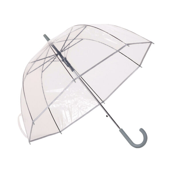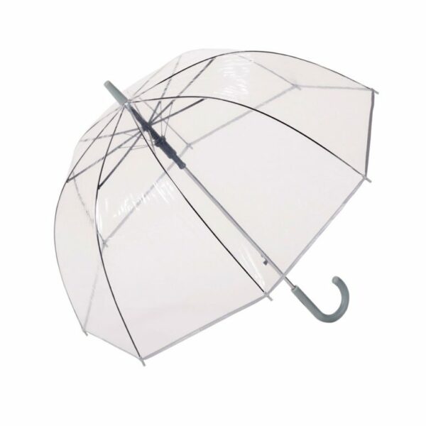 A Sombrinha Transparente Automática Cinza traz conforto e delicadeza para os dias chuvosos, o seu formato em sino protege melhor e a sua transparência lhe proporciona uma experiência única na chuva! Composta por metal, tecido PVC e cabo de polímero curvo.