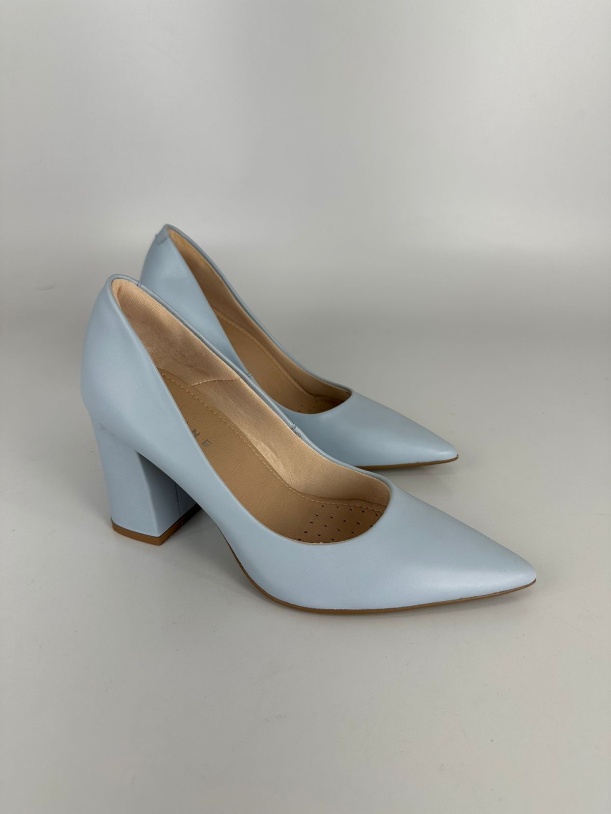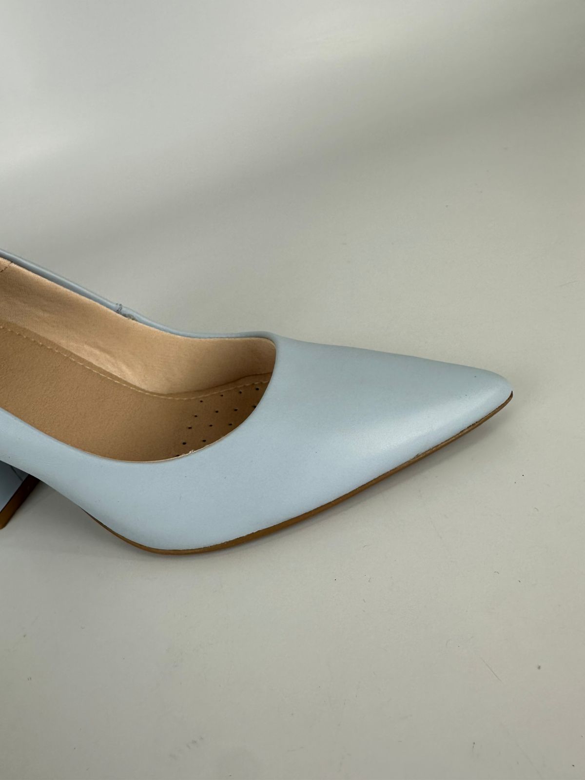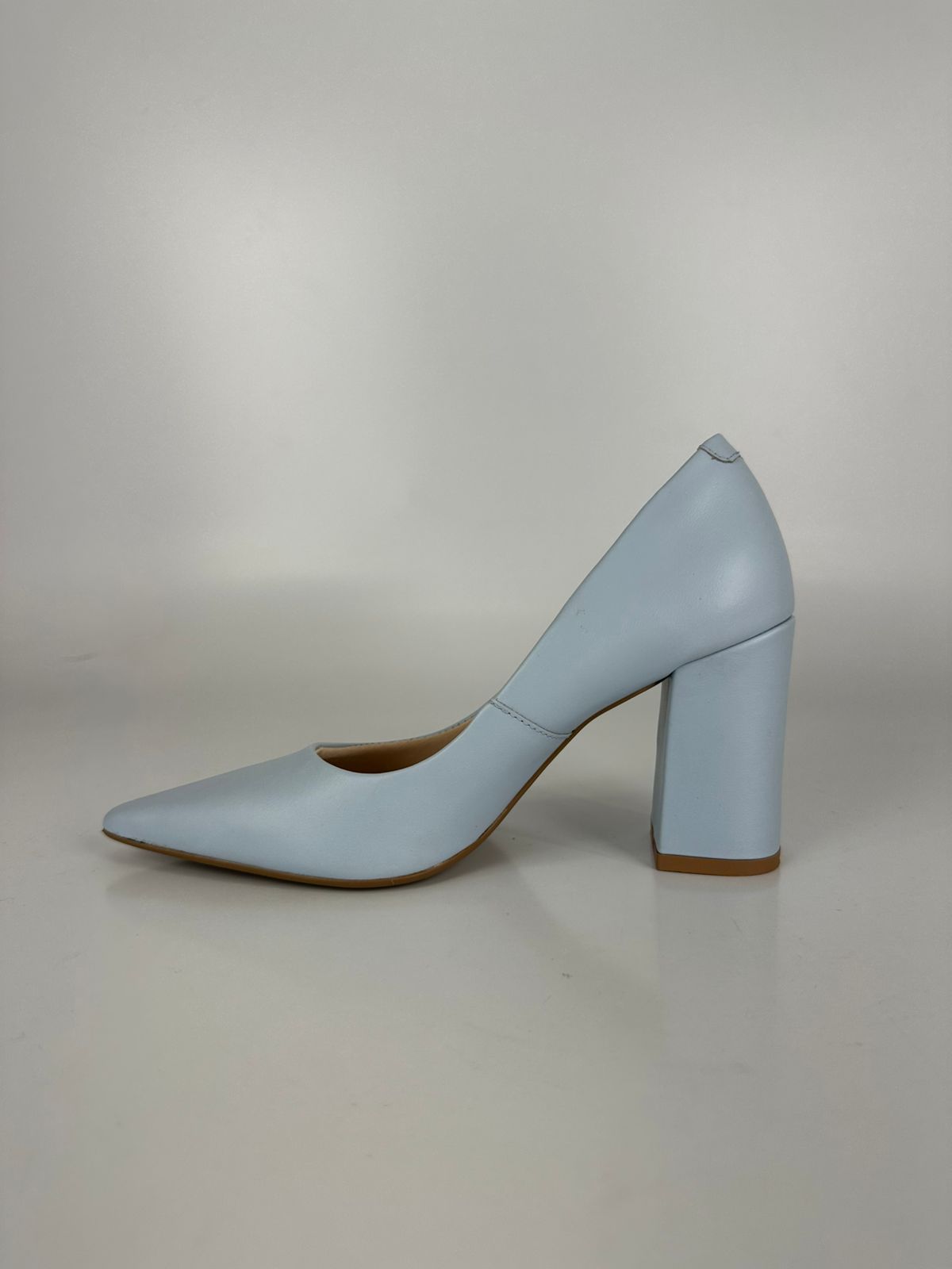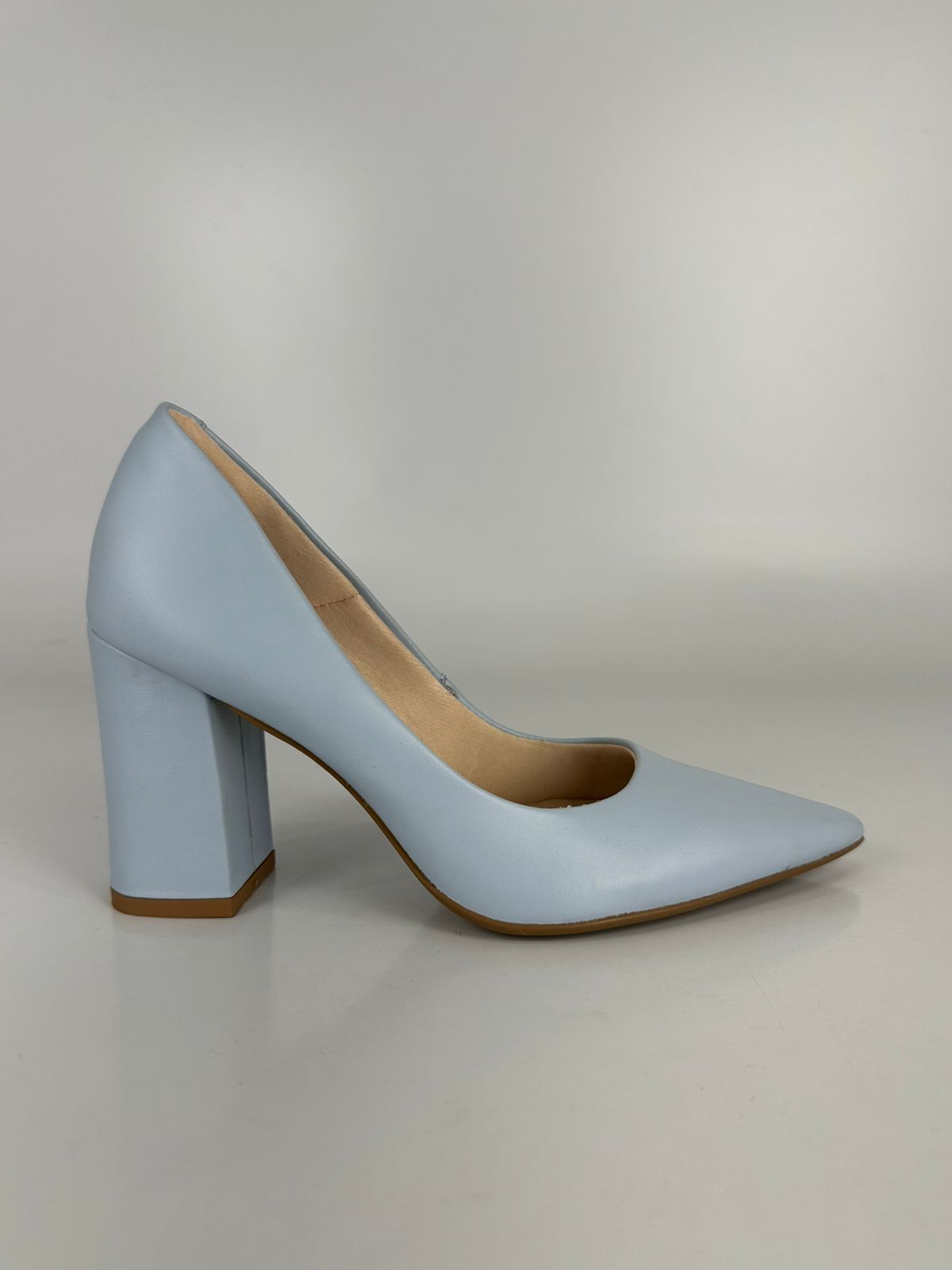 Lialine Scarpin Salto Alto Bloco Couro Azul