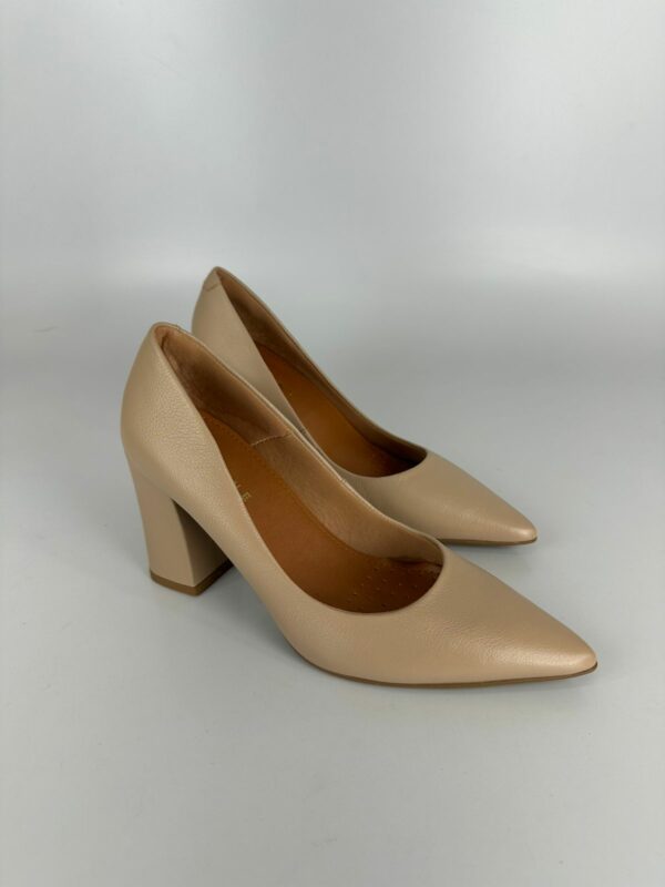 Lialine Scarpin Salto Bloco Alto Couro Nude