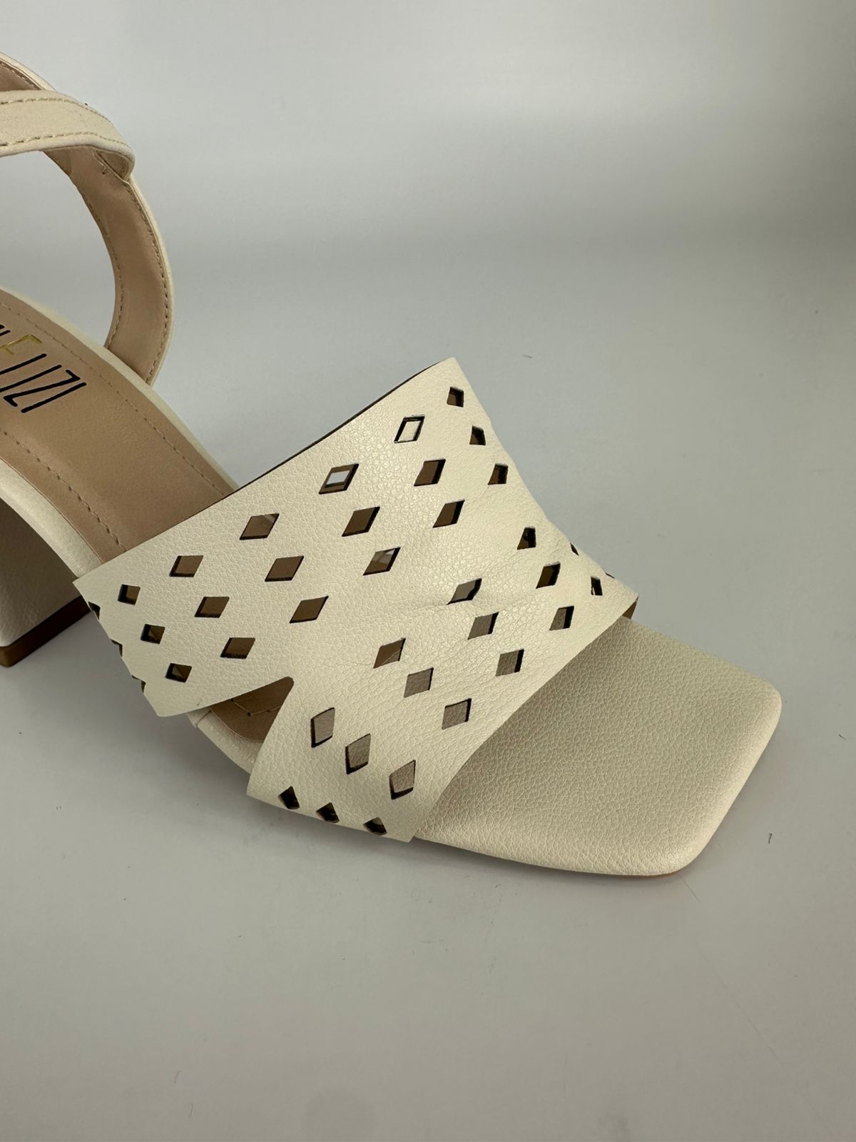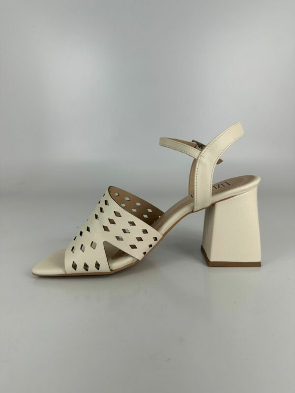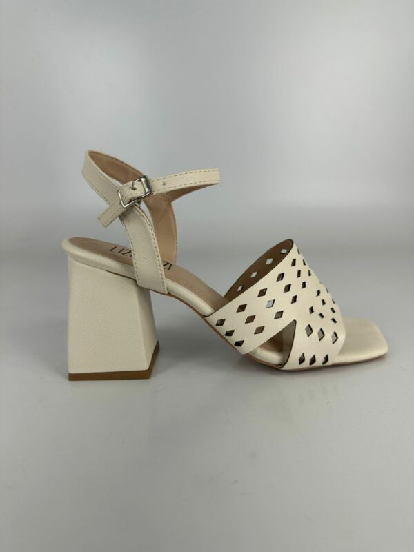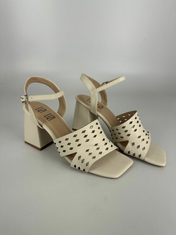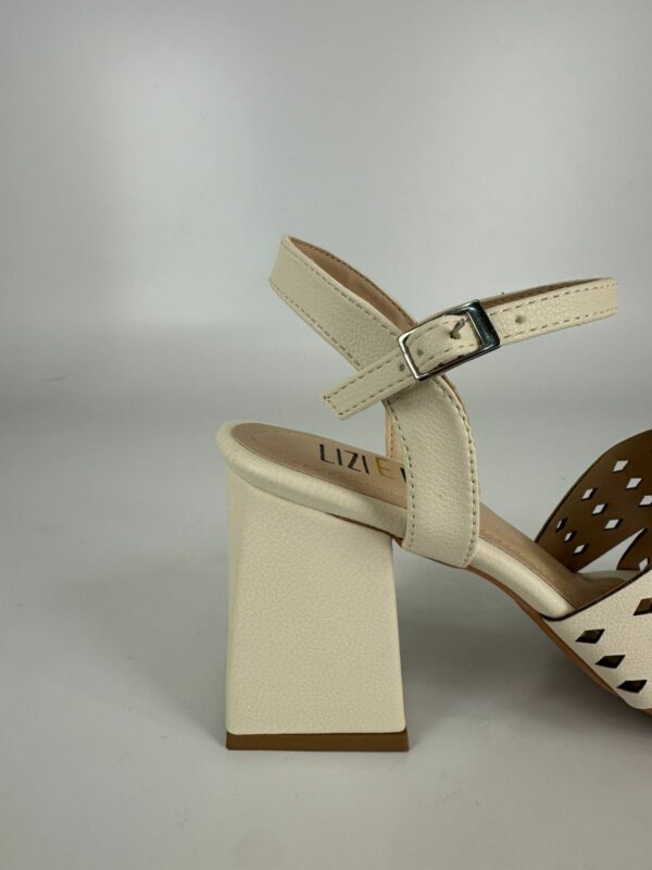 Lizielizi Sandália Salto Bloco Couro Off White