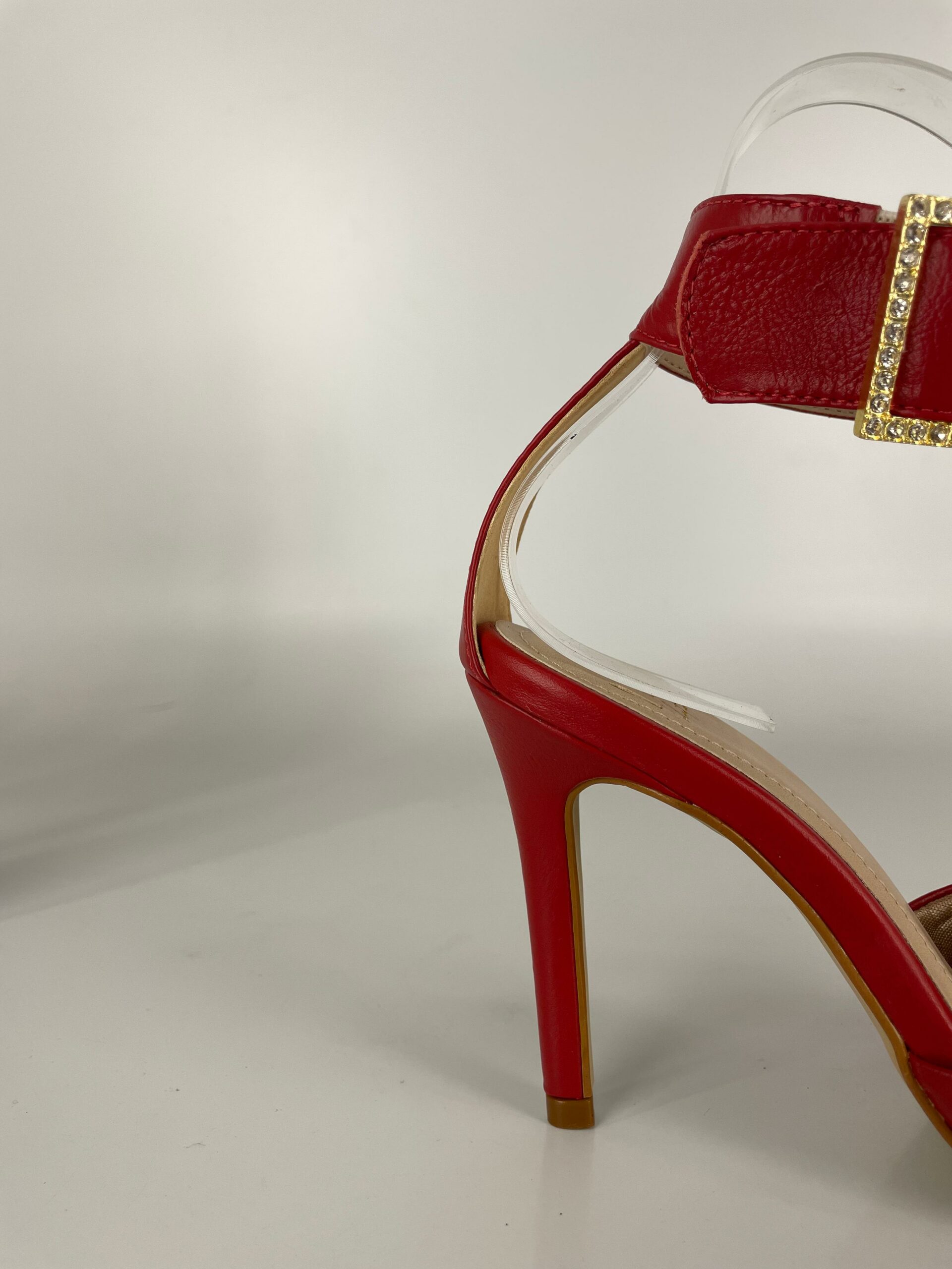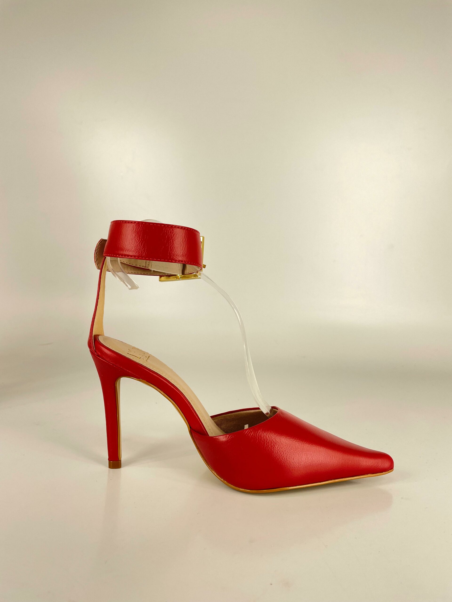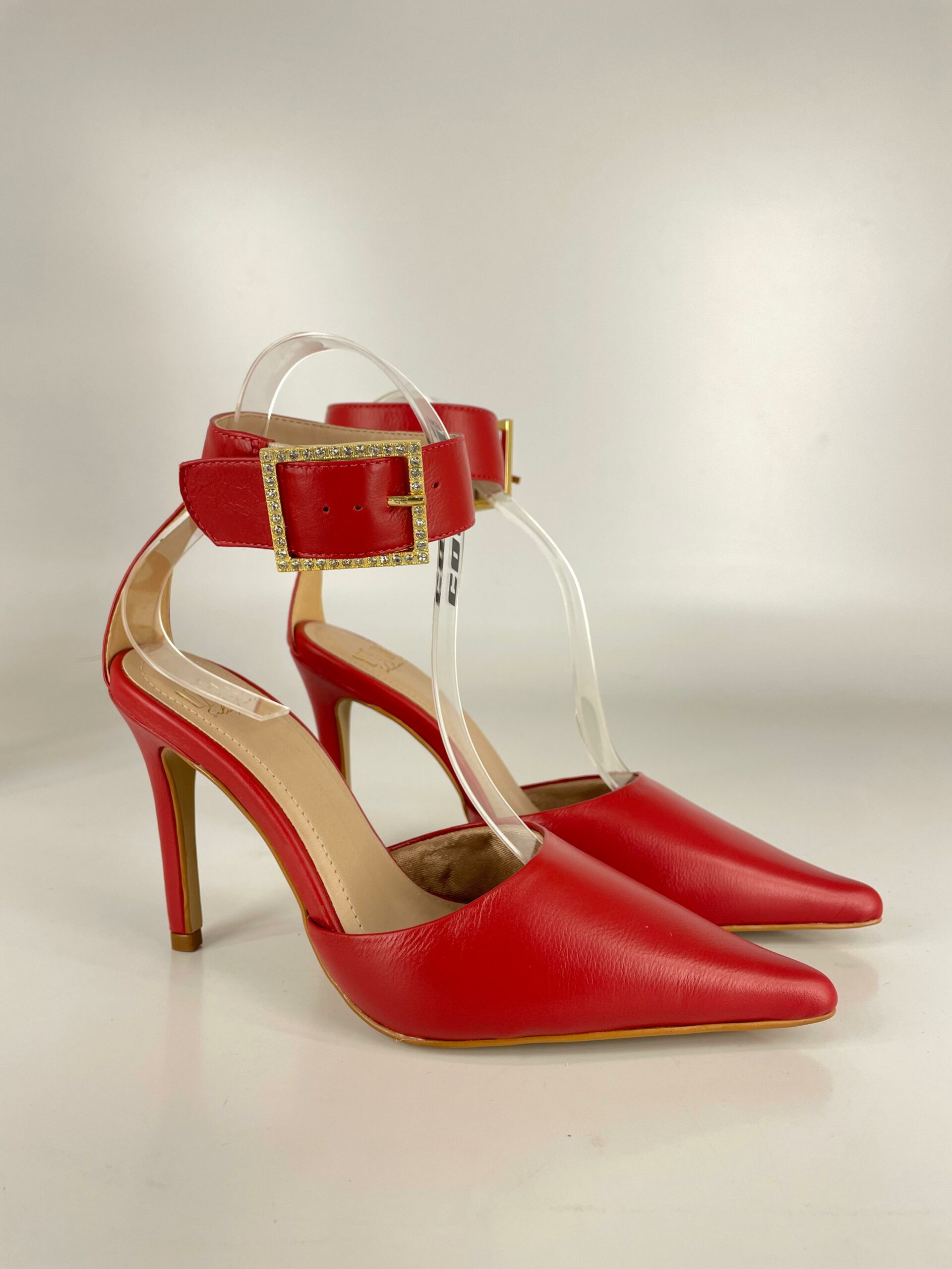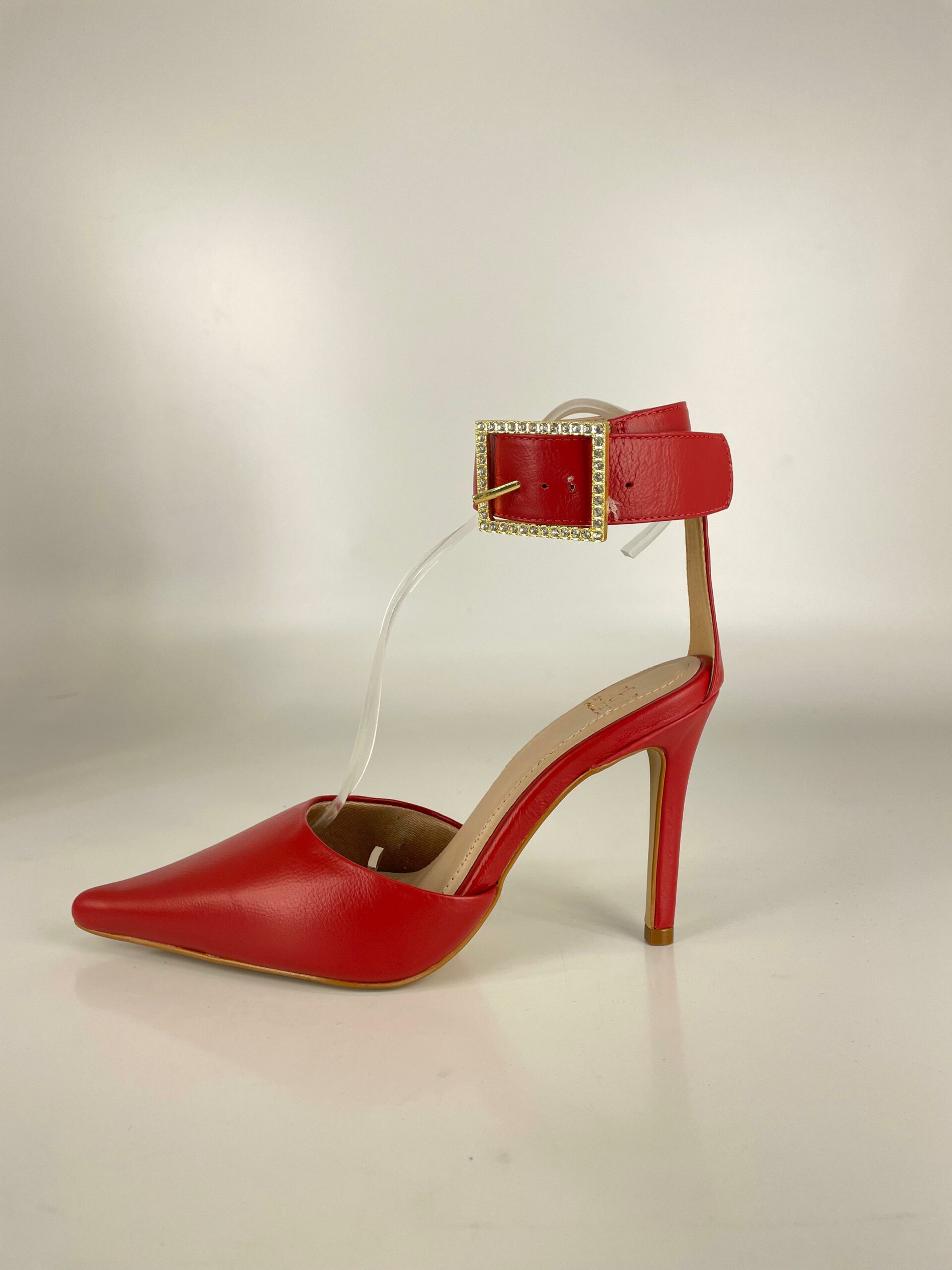 Lizielizi Scarpin Com Fivela Couro Vermelho