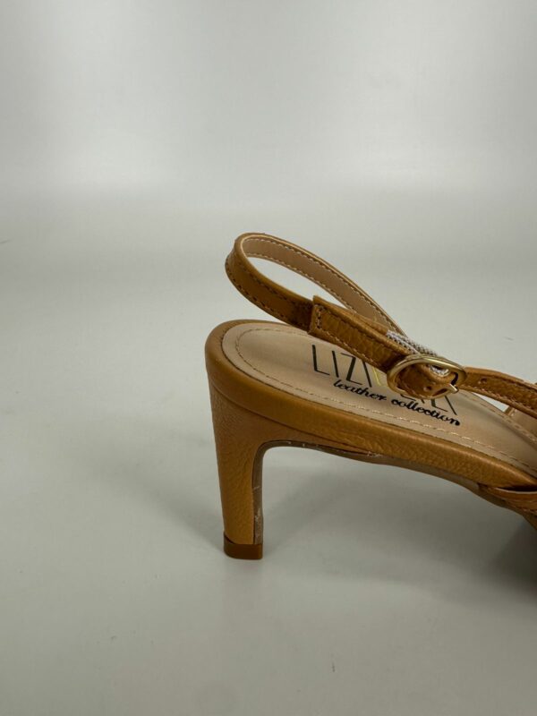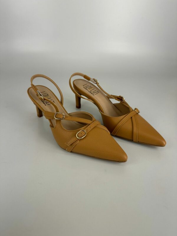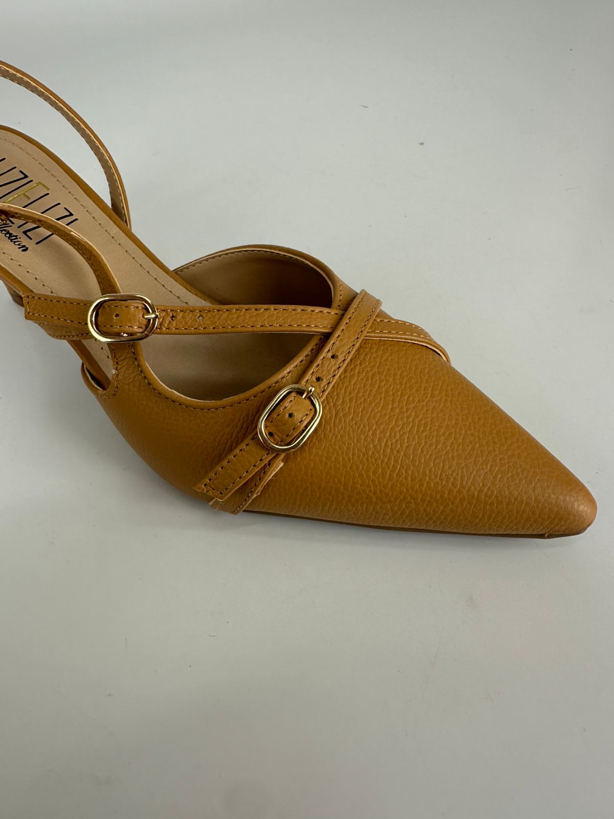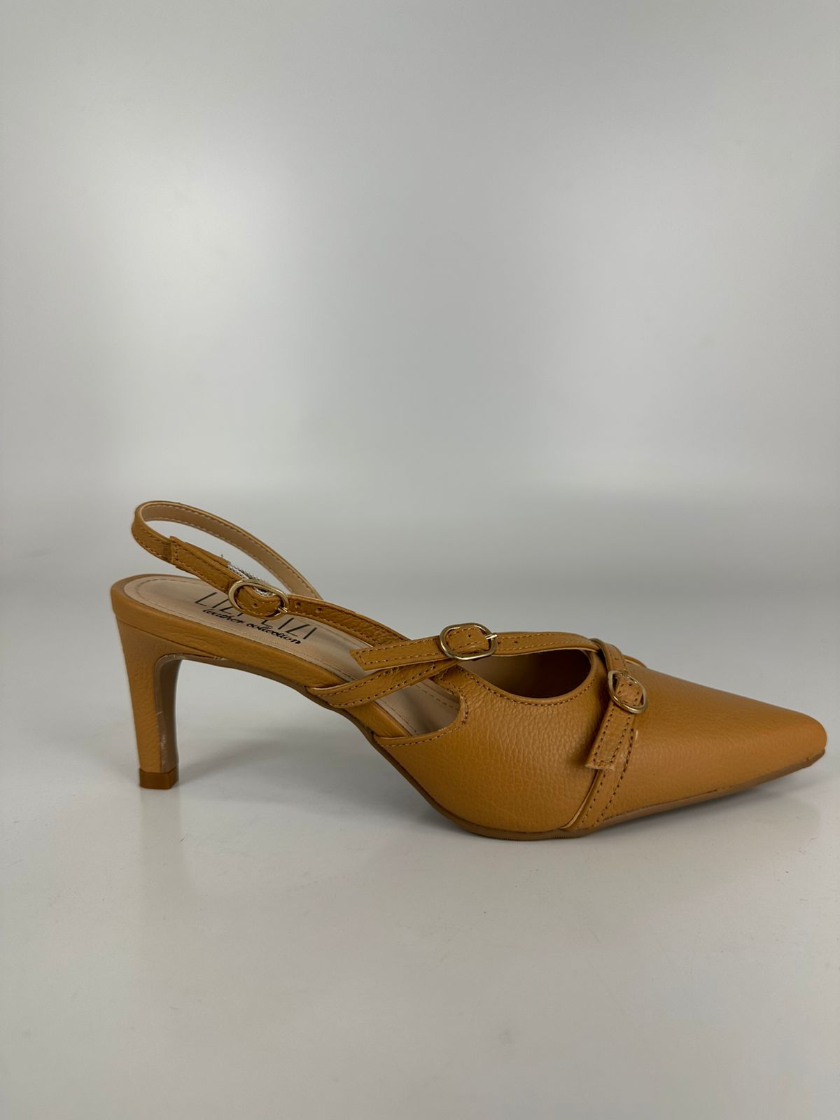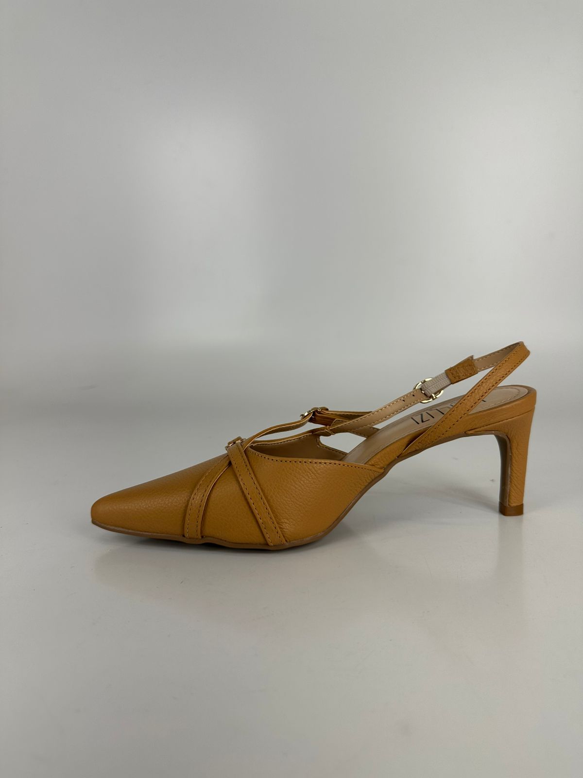 Lizielizi Slingback Salto Fino Couro Caramelo