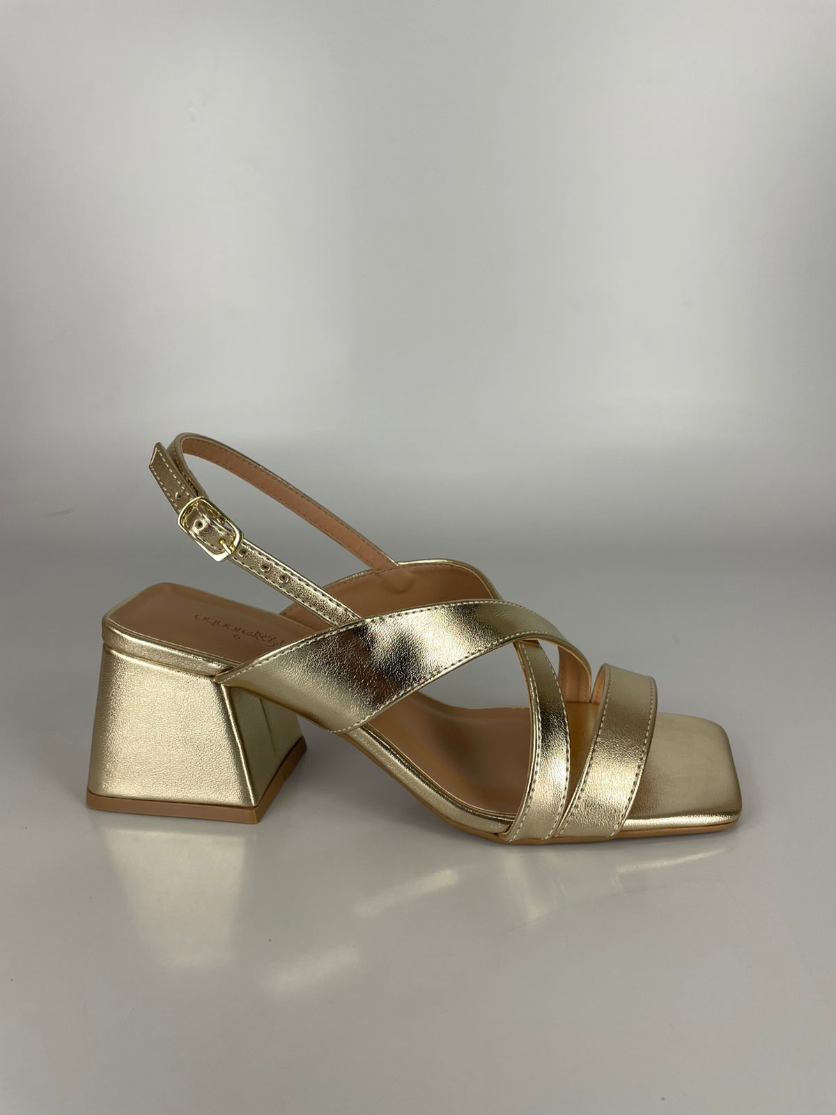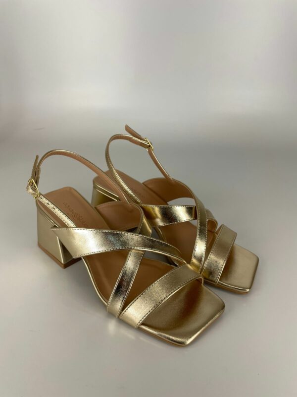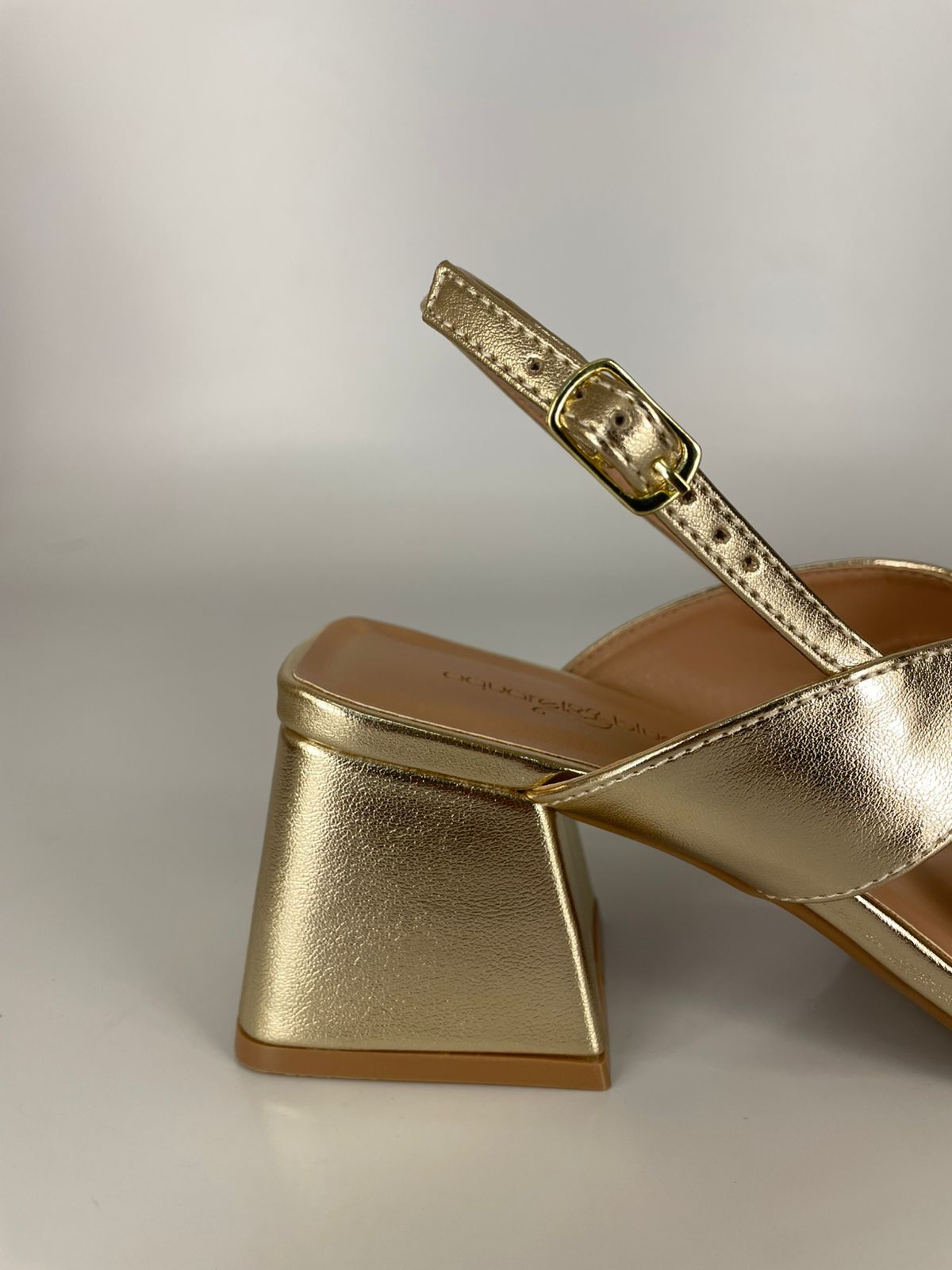 Aquarela Sandália Salto Bloco Metalizada
