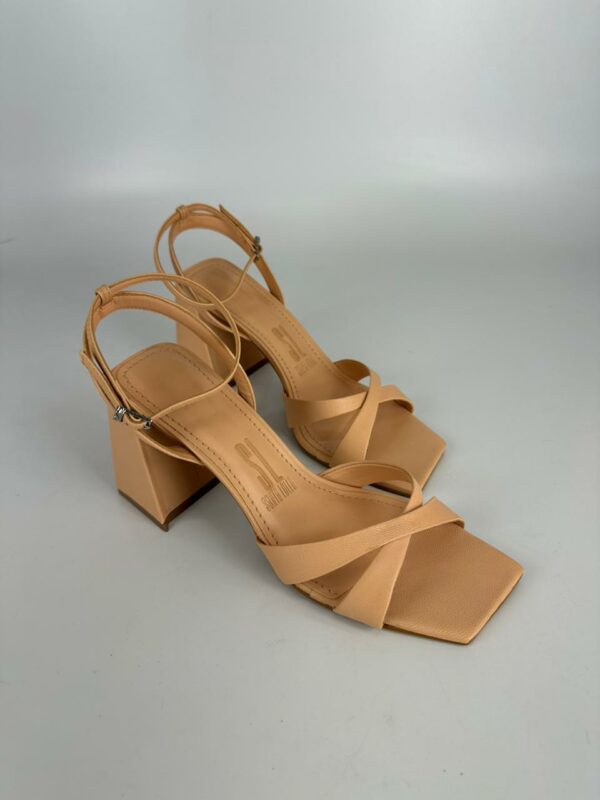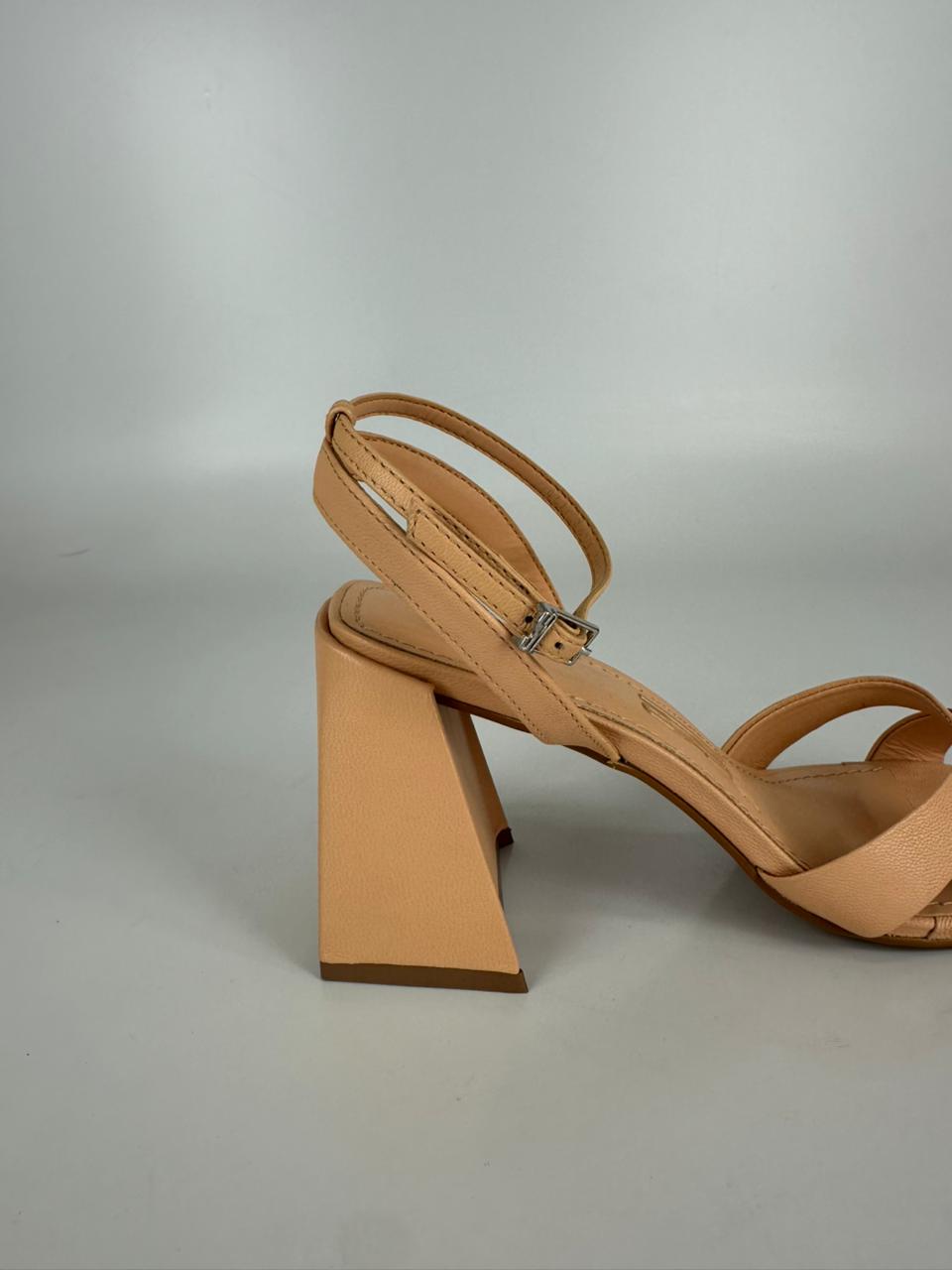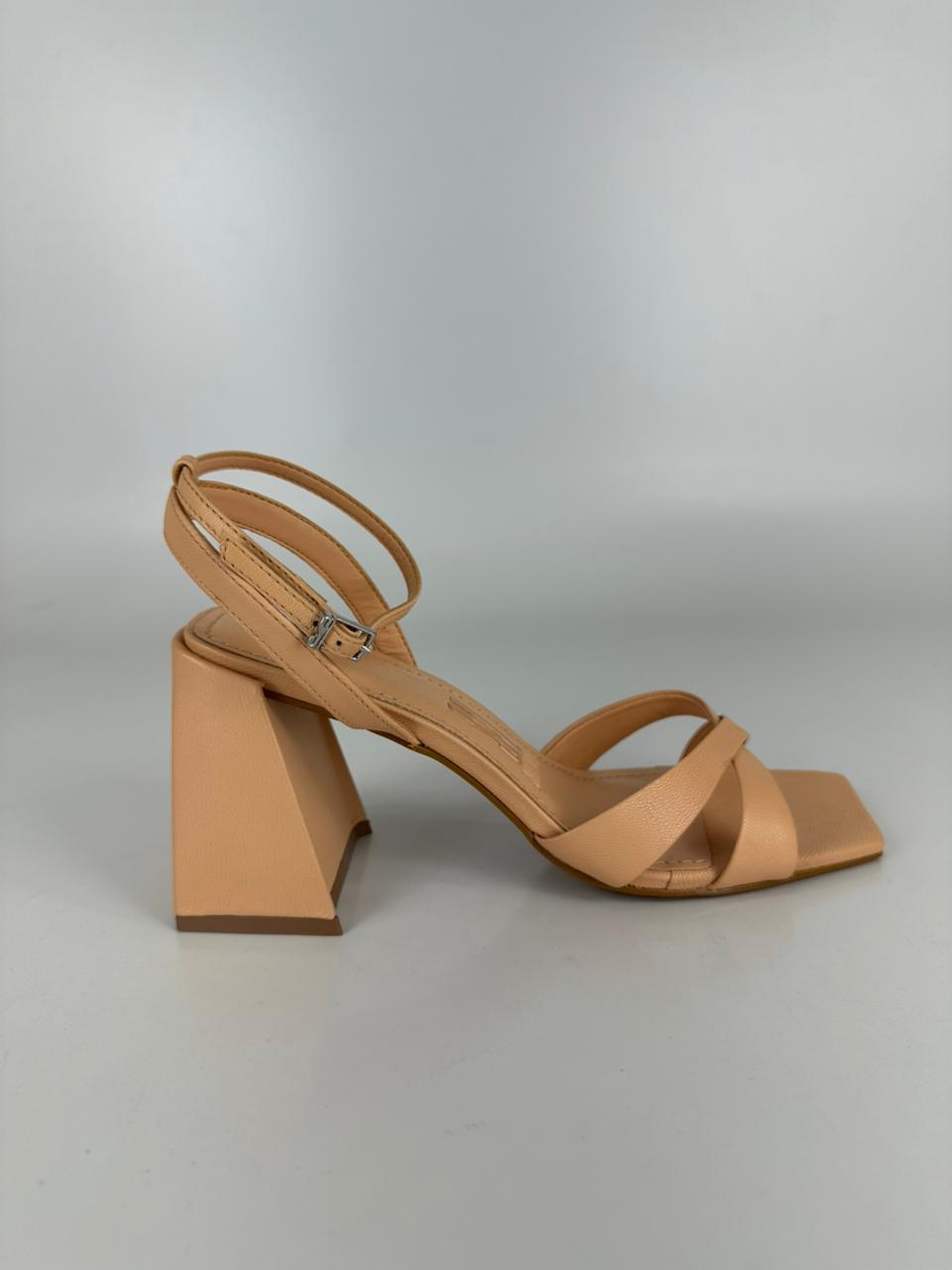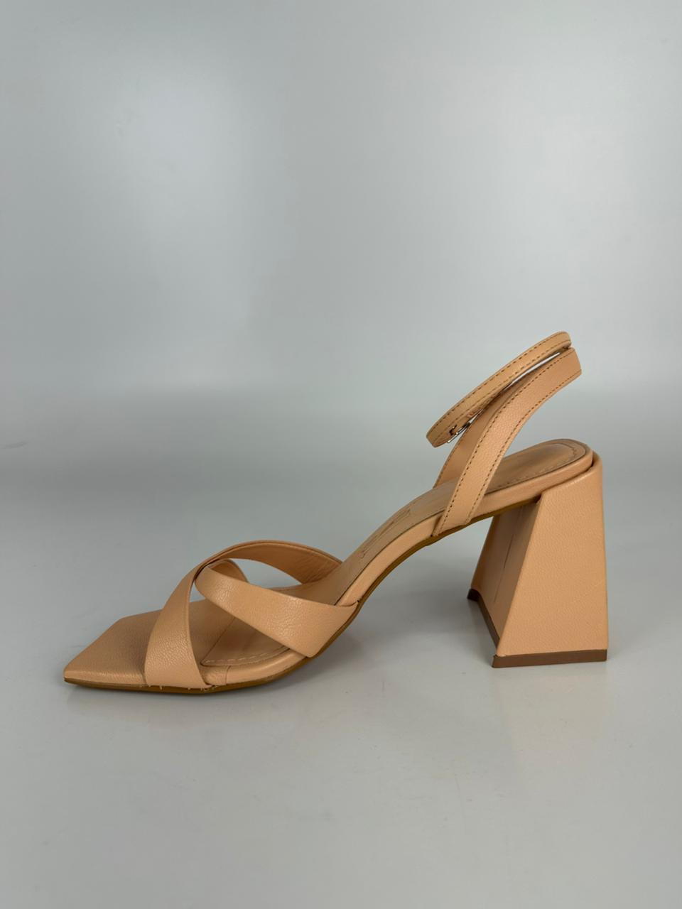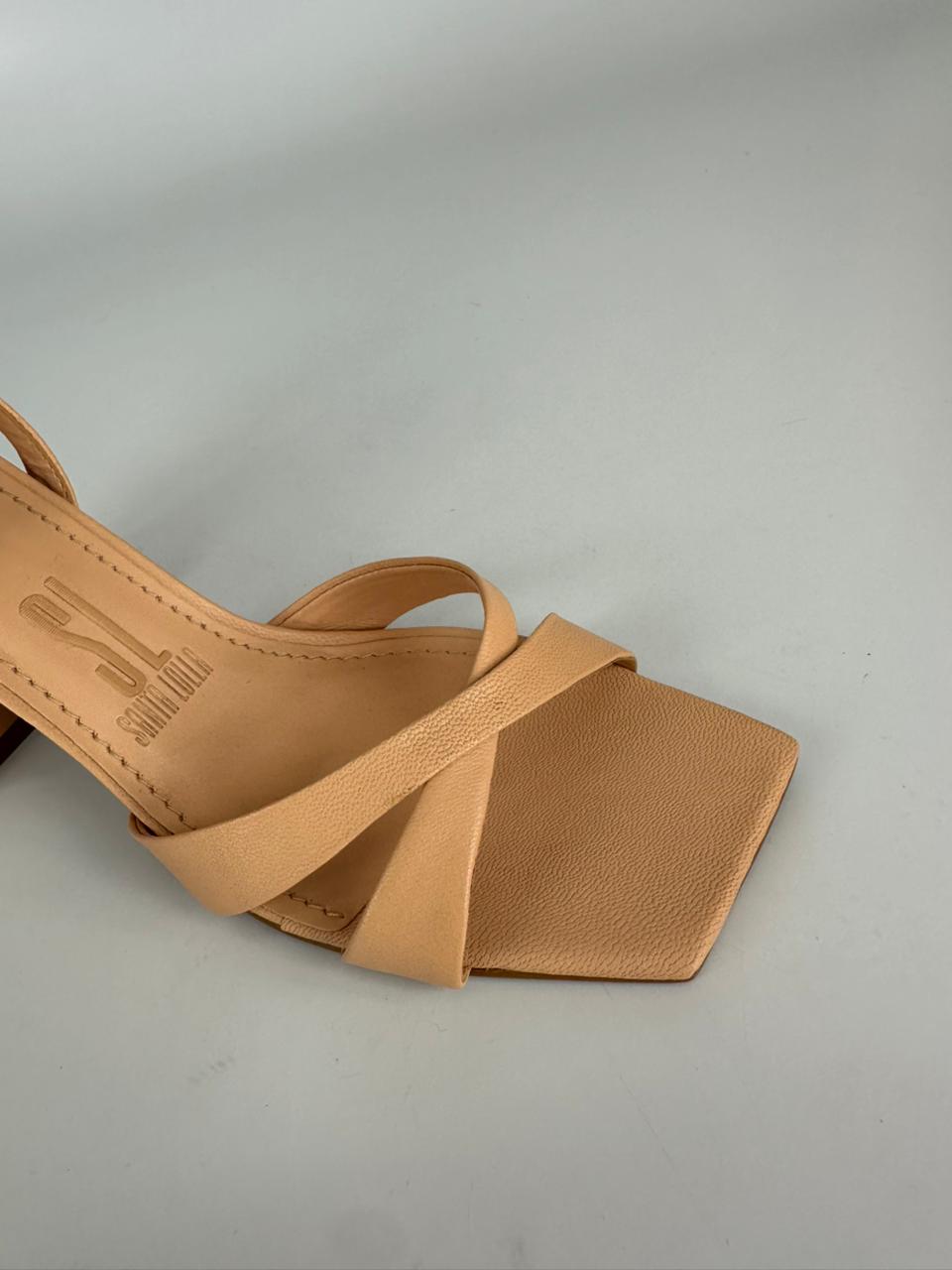 Santalolla Sandália Salto Bloco Tiras Em X Couro Nude