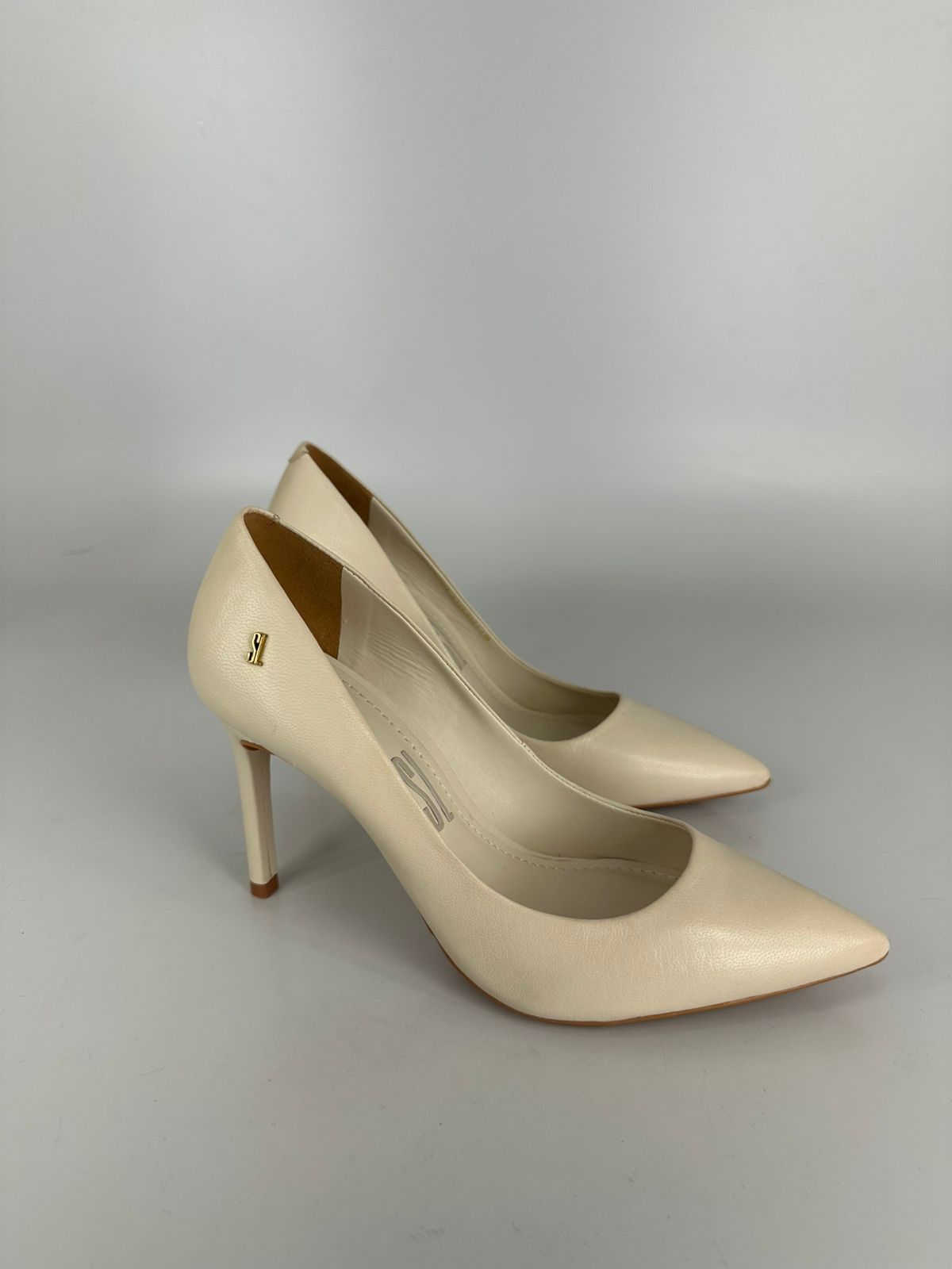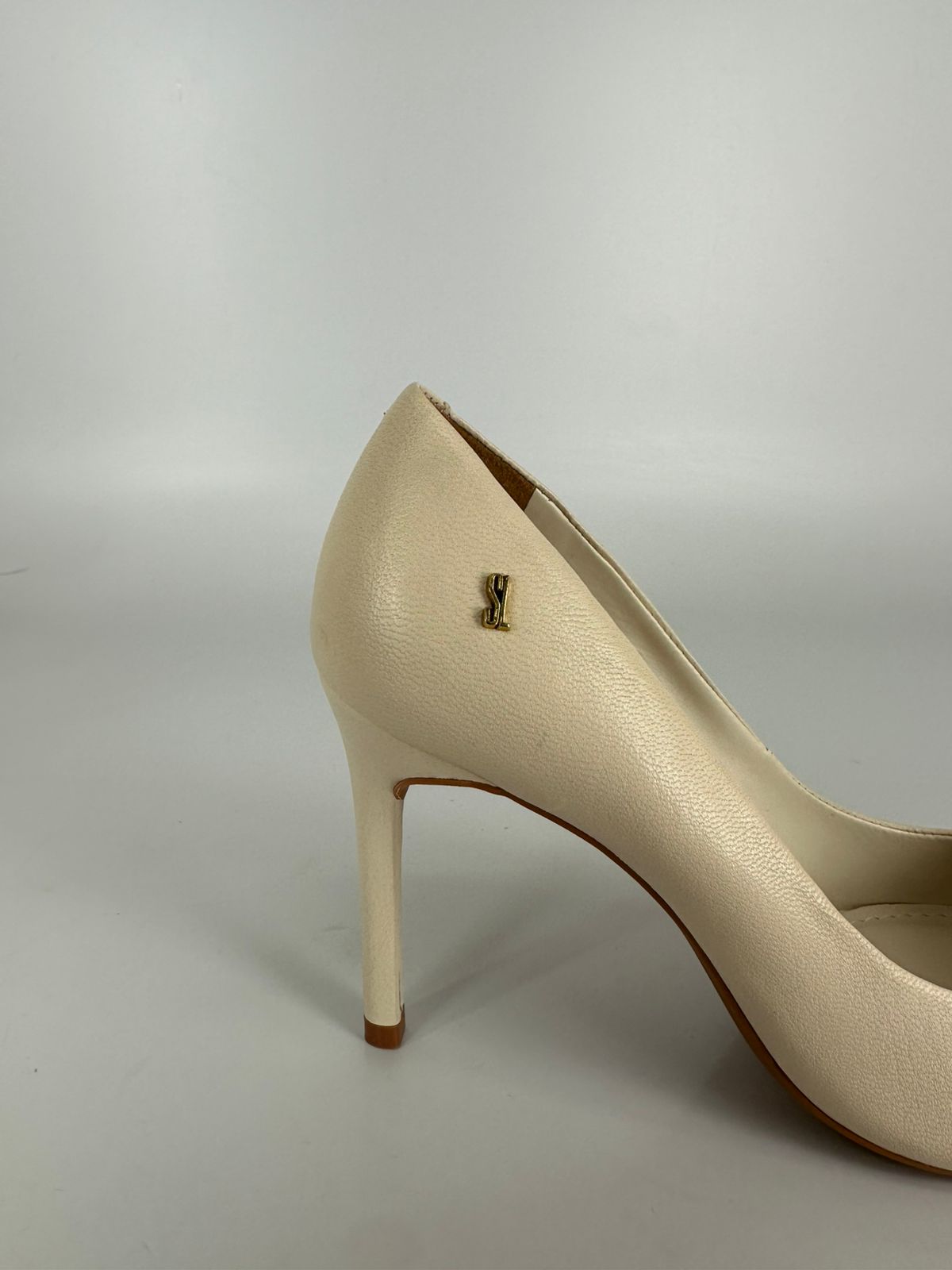 Santalolla Scarpin Salto Fino Alto Couro Pelica Branco