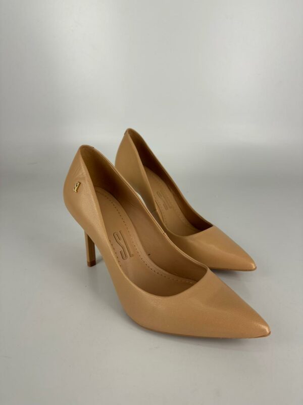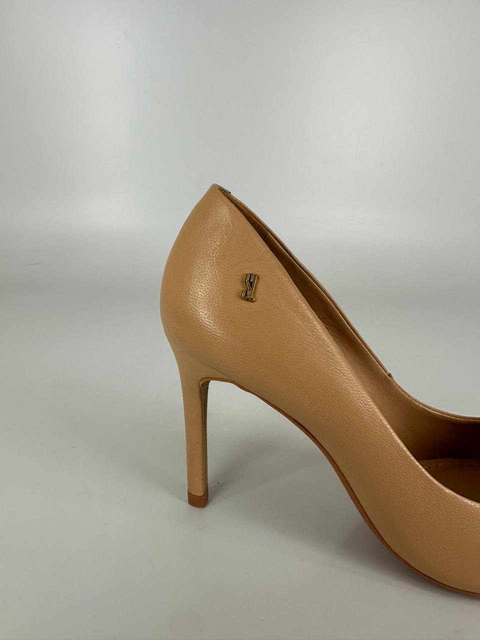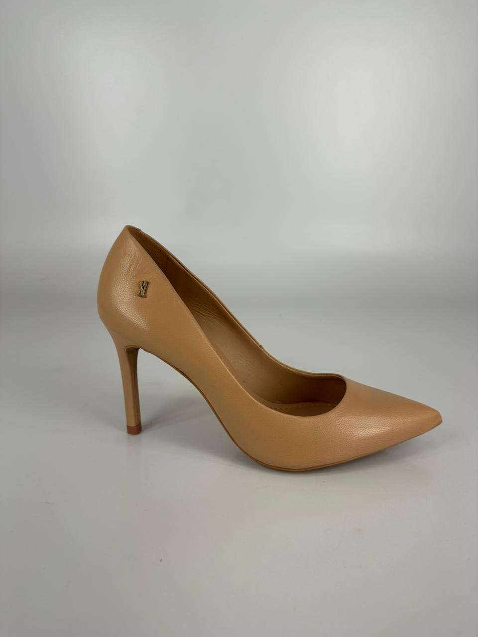Santalolla Scarpin Salto Fino Couro Pelica Amendoa