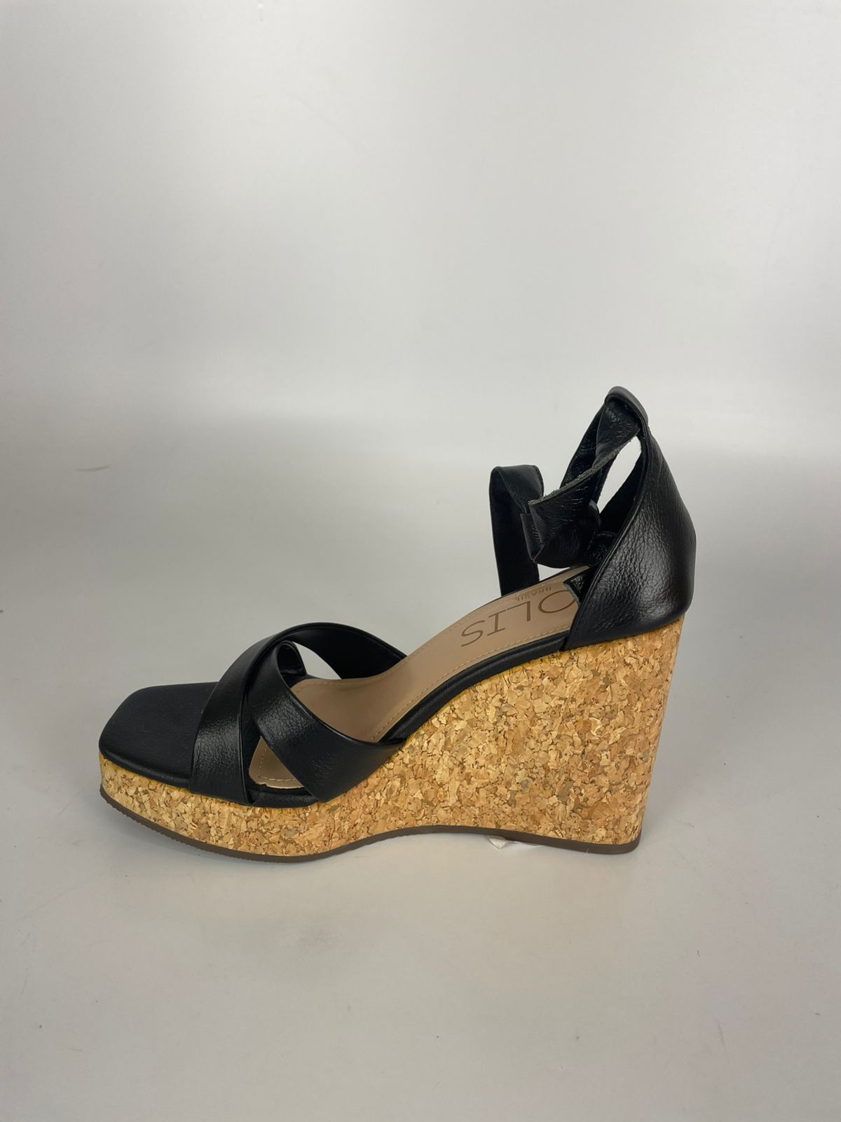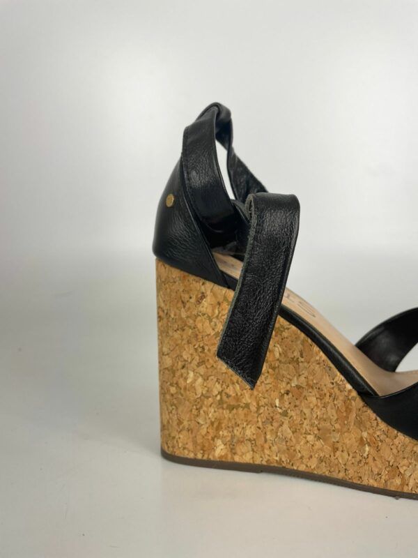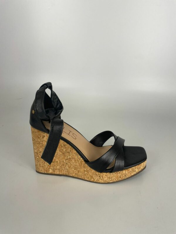 Solis Sandália Anabela Couro Preto