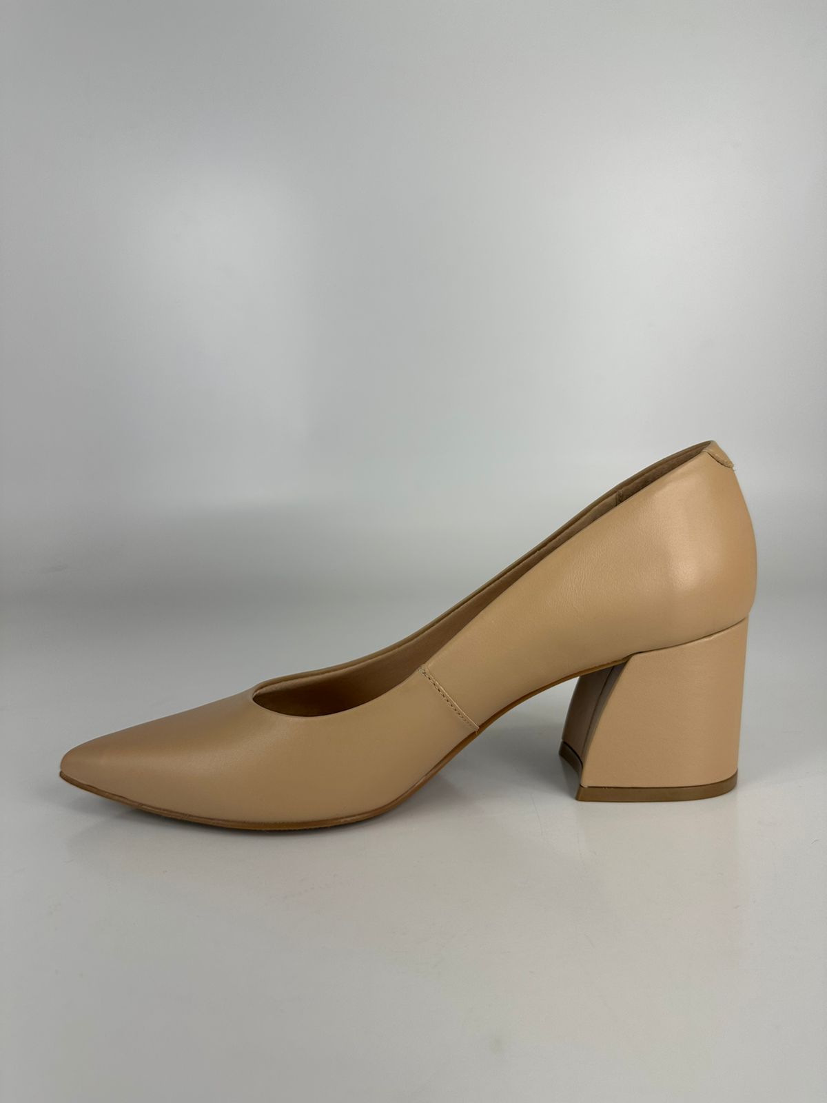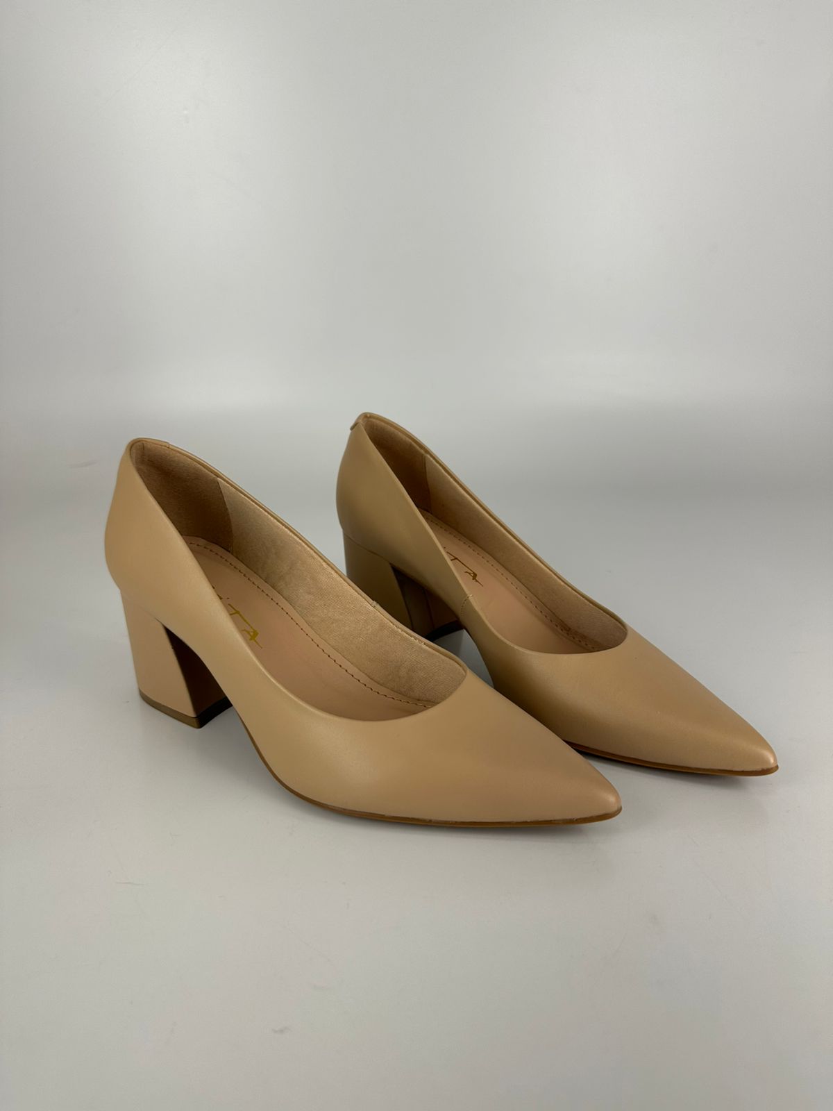 Tabita Scarpin Salto Bloco Médio Couro Creme
